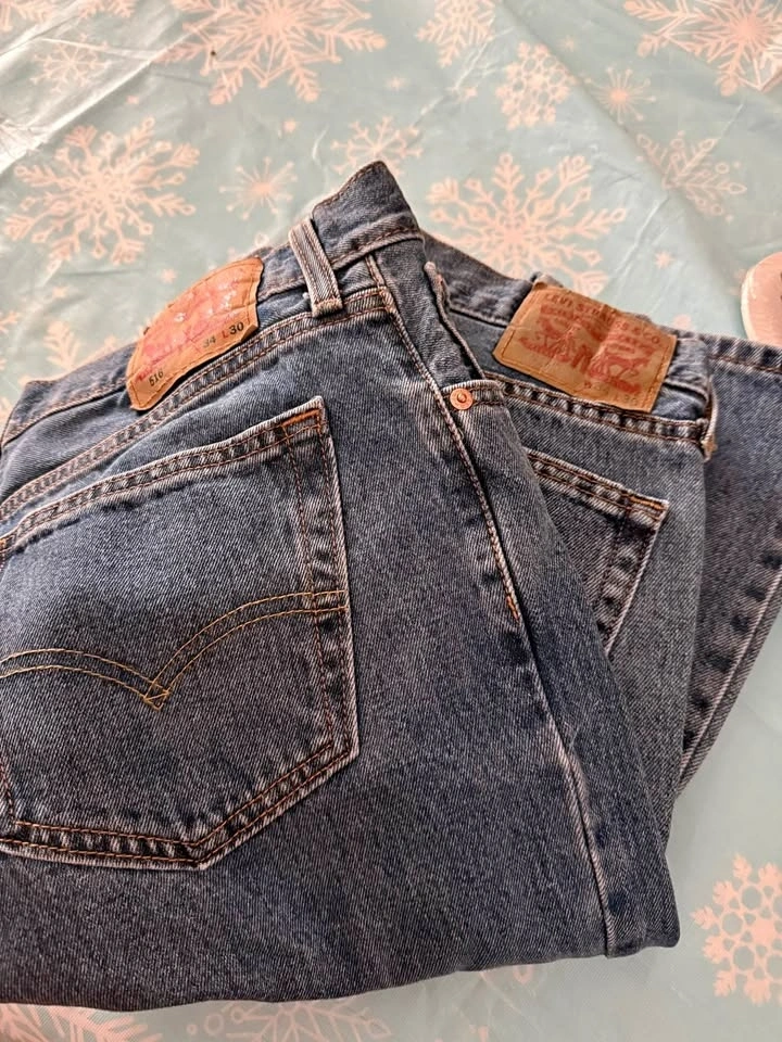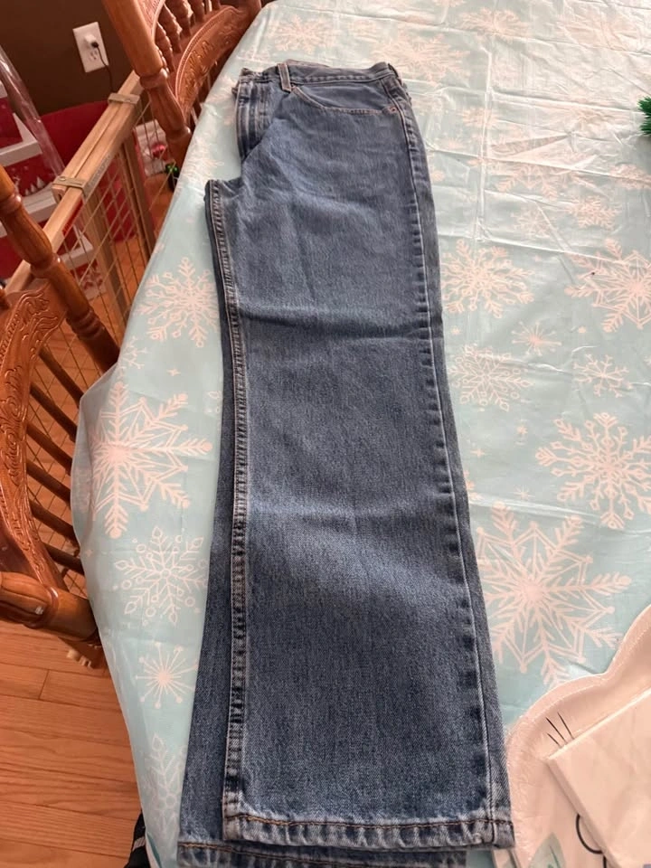 Hubby didn't realize they gave him the wrong size in the store. Couldn’t return them because tags were removed and they were washed. Never worn. He's a 34x34, so these are too short for him. Style 516 slim fit, darker blue. $25 each. Available for pickup in the Hespeler area.