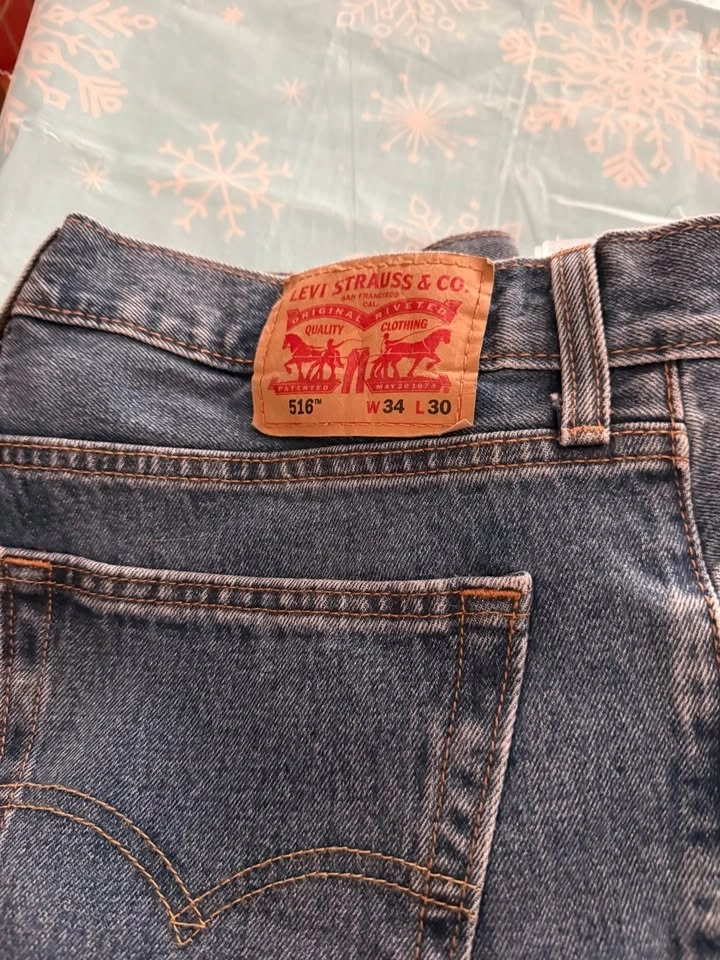 Hubby didn't realize they gave him the wrong size in the store. Couldn’t return them because tags were removed and they were washed. Never worn. He's a 34x34, so these are too short for him. Style 516 slim fit, darker blue. $25 each. Available for pickup in the Hespeler area.