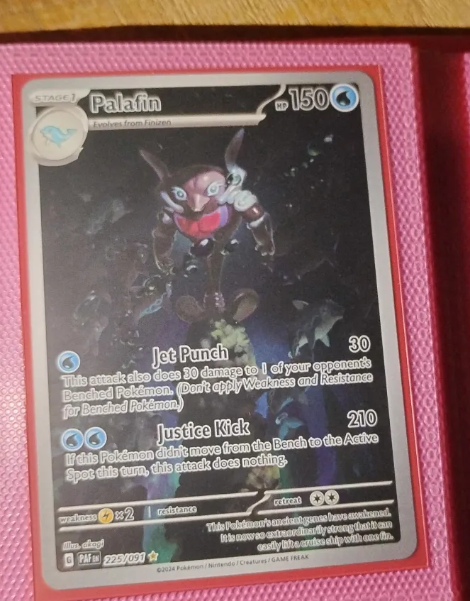 Selling a Palafin Pokemon card. It evolves from Finizen and has 150 HP.