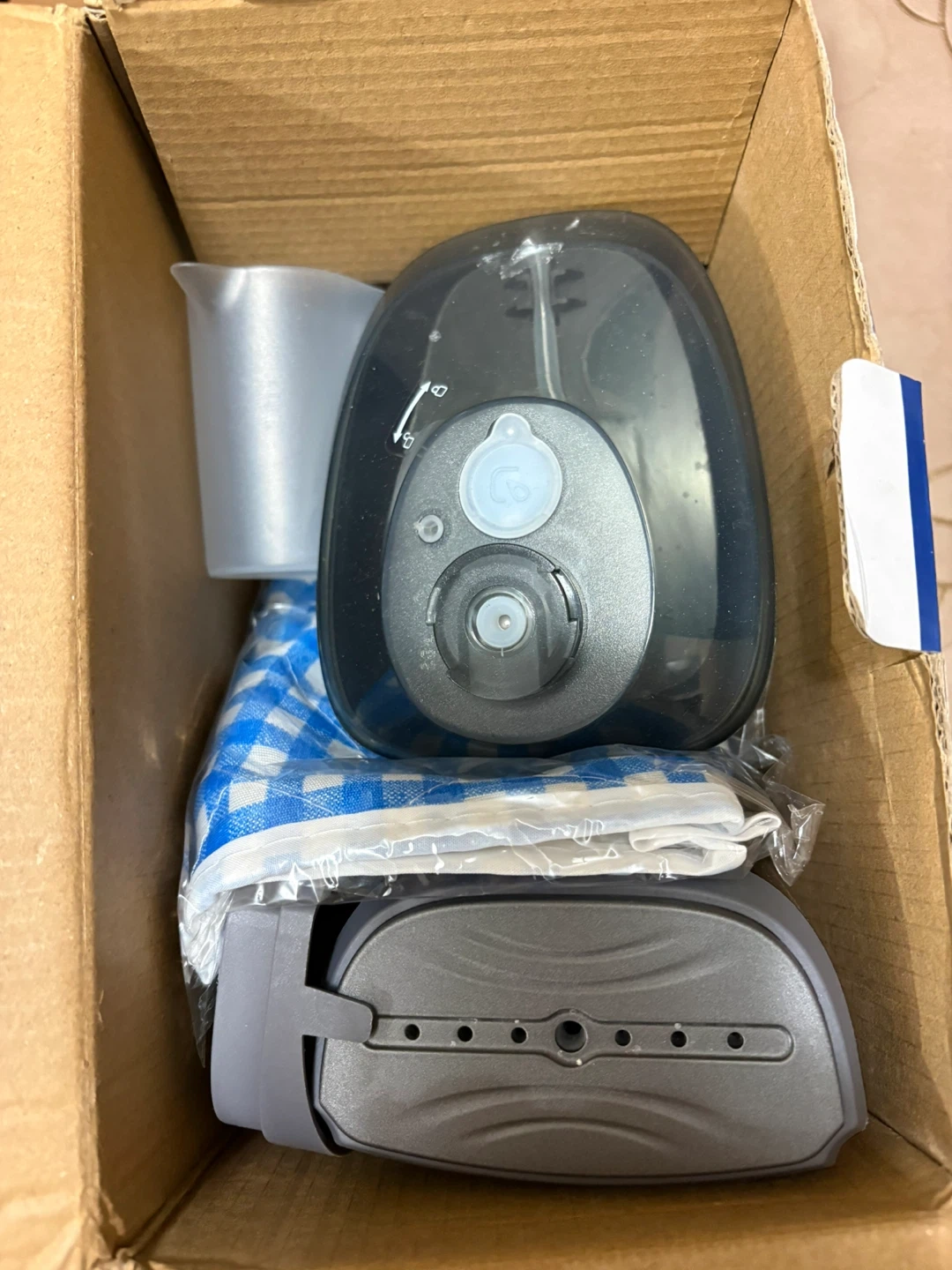 This is a TAYDZSOW RX1 handheld garment steamer. It's 1800 Watts and has a fast 20-second heat-up time. It comes with a measuring cup, a brush attachment, and a heat-resistant glove. The steamer offers up to 20 minutes of continuous steaming with two settings for dry and wet use.