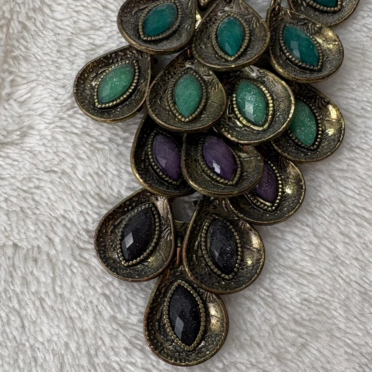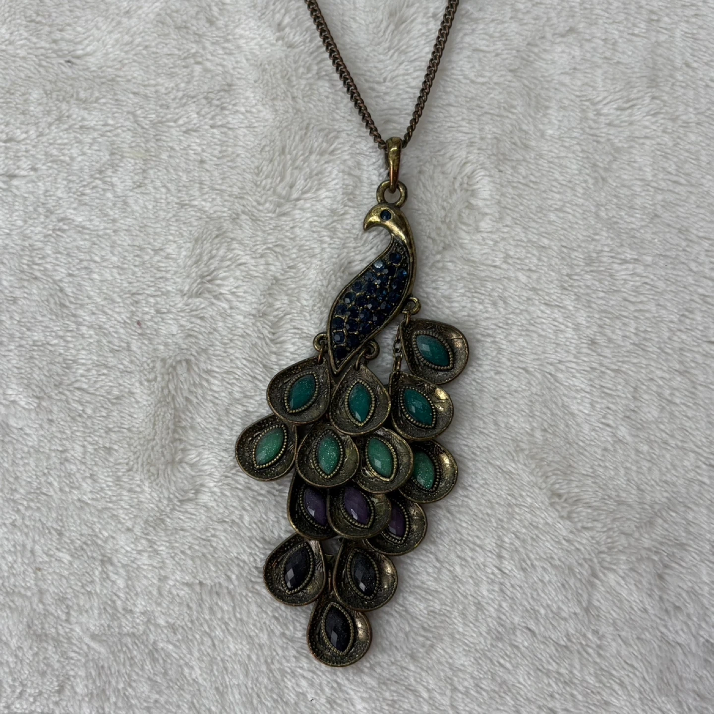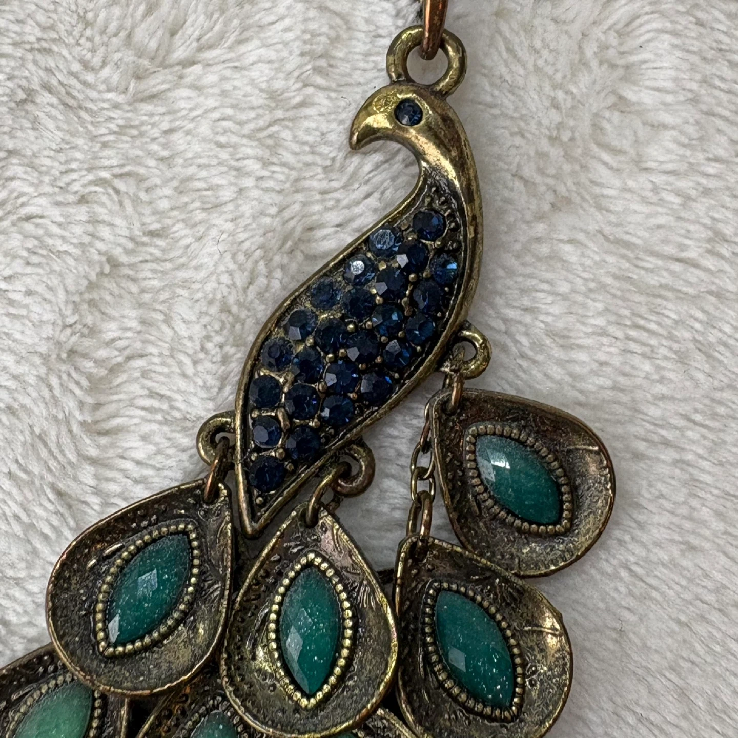 peacock, necklace, jewelry, vintage, bronze, statement, pendant, stones, rhinestone, long, colorful, bohemian, accessory, tiered, bird