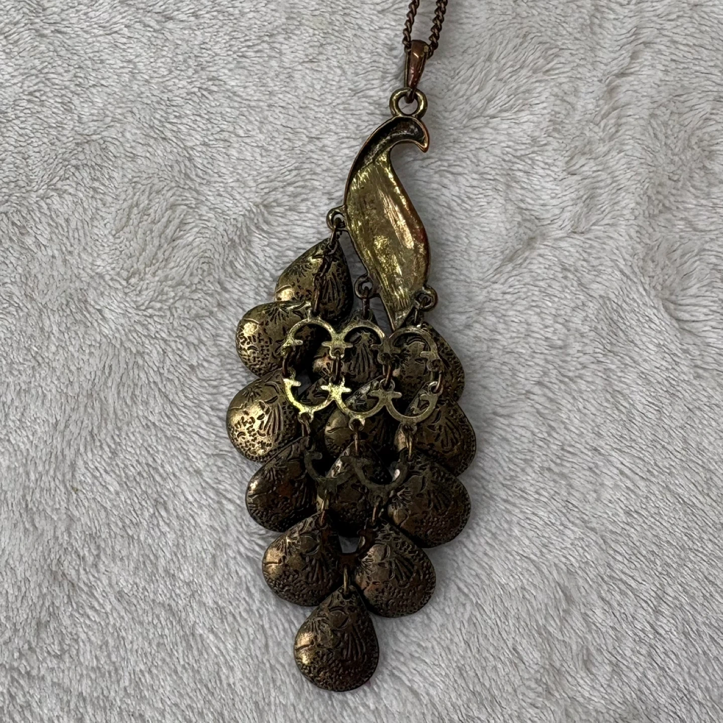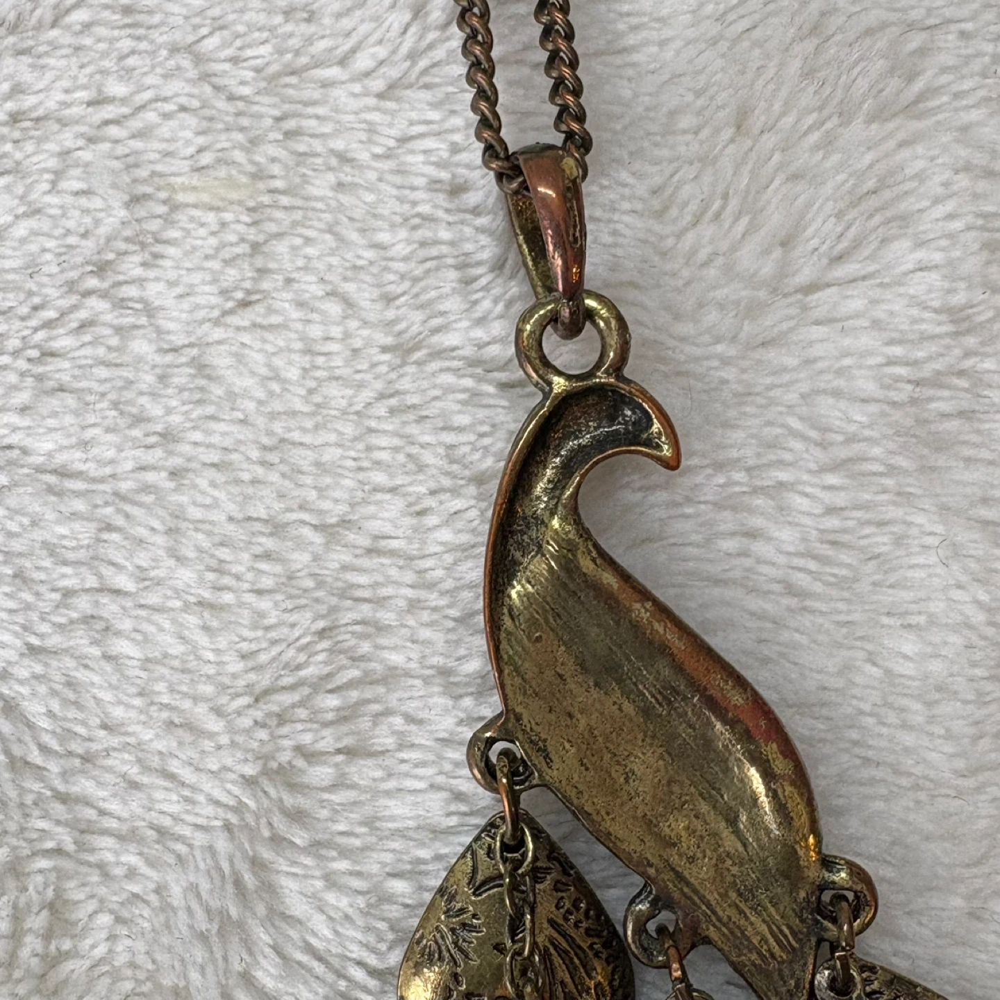 Vintage Pier 1 Long Antique Bronze Peacock Pendant Necklace