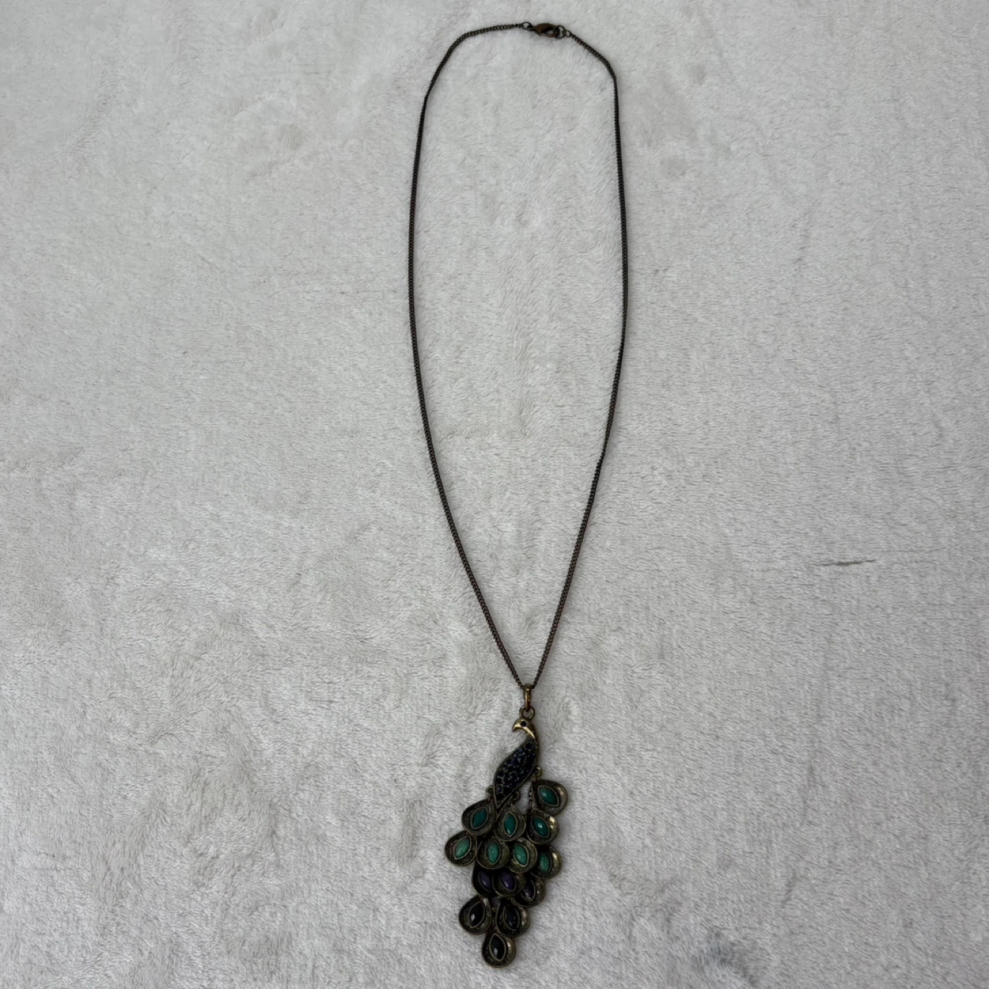 peacock, necklace, jewelry, vintage, bronze, statement, pendant, stones, rhinestone, long, colorful, bohemian, accessory, tiered, bird