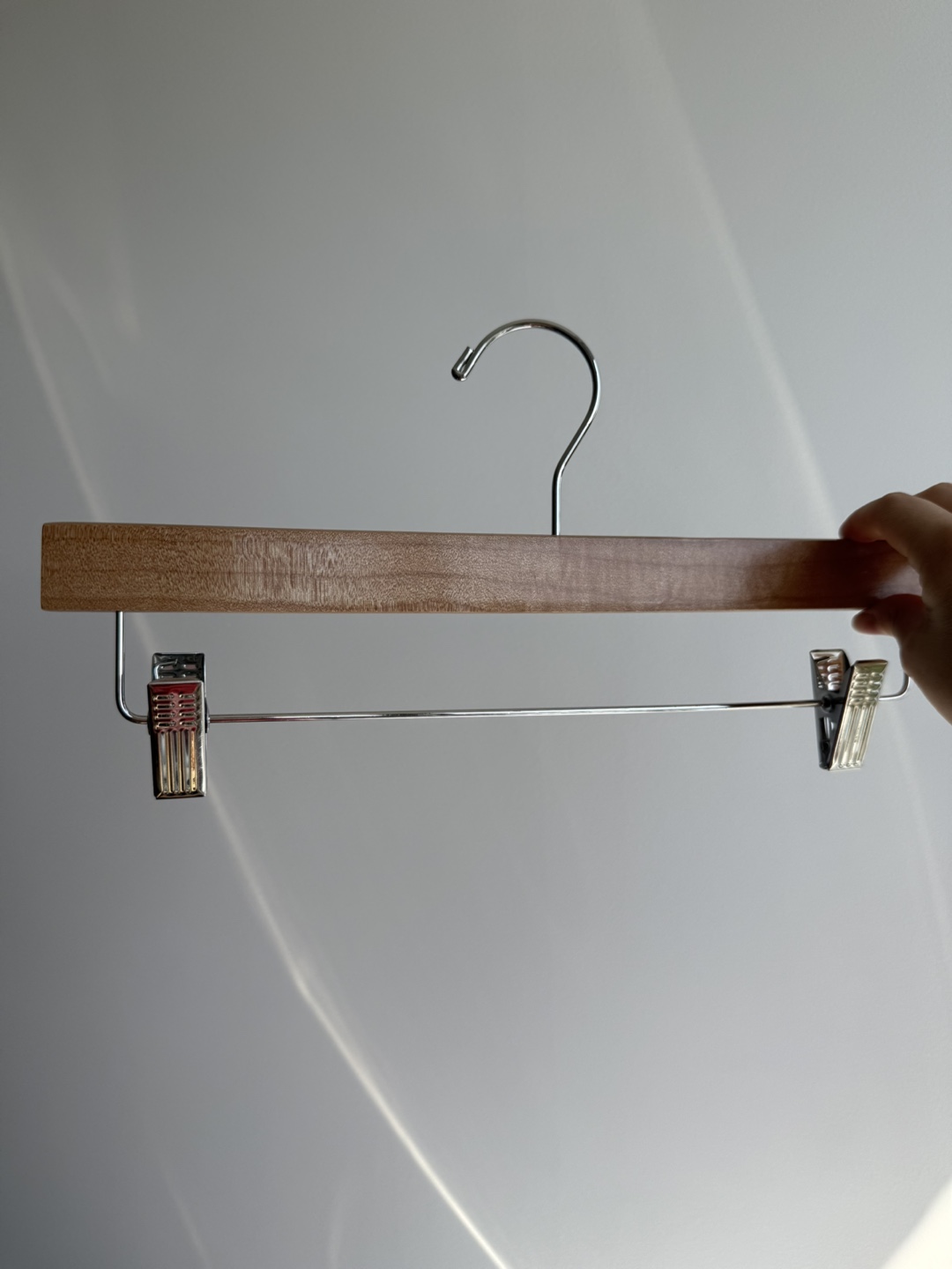 Selling a bundle of 28 high-quality natural wooden hangers with strong metal clips β ideal for pants, skirts, shorts, or even accessories.