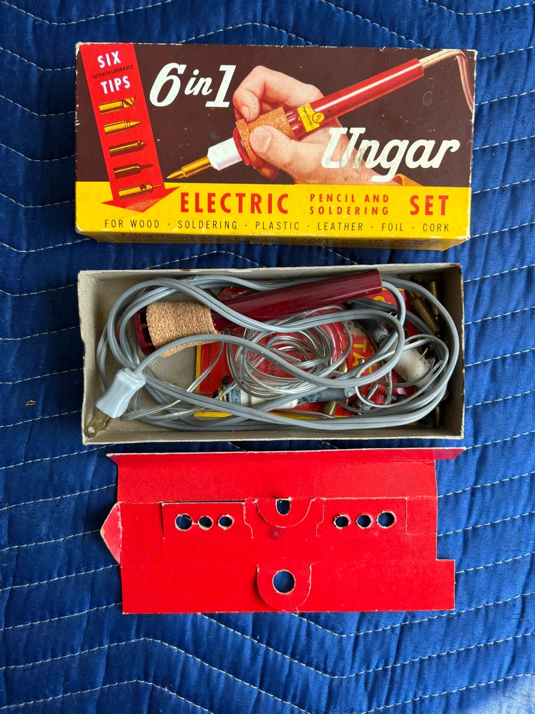 Selling an Ungar 6-in-1 Electric Pencil and Soldering Set! It comes with six interchangeable tips. Great for wood, soldering, plastic, leather, foil, and cork. Box included!