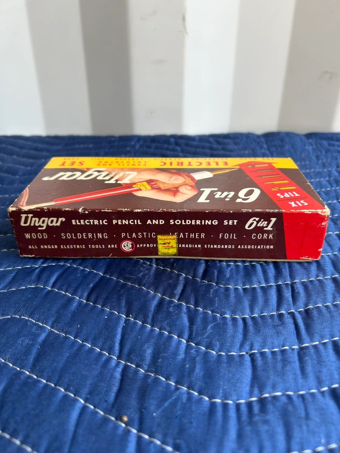 Selling an Ungar 6-in-1 Electric Pencil and Soldering Set! It comes with six interchangeable tips. Great for wood, soldering, plastic, leather, foil, and cork. Box included!