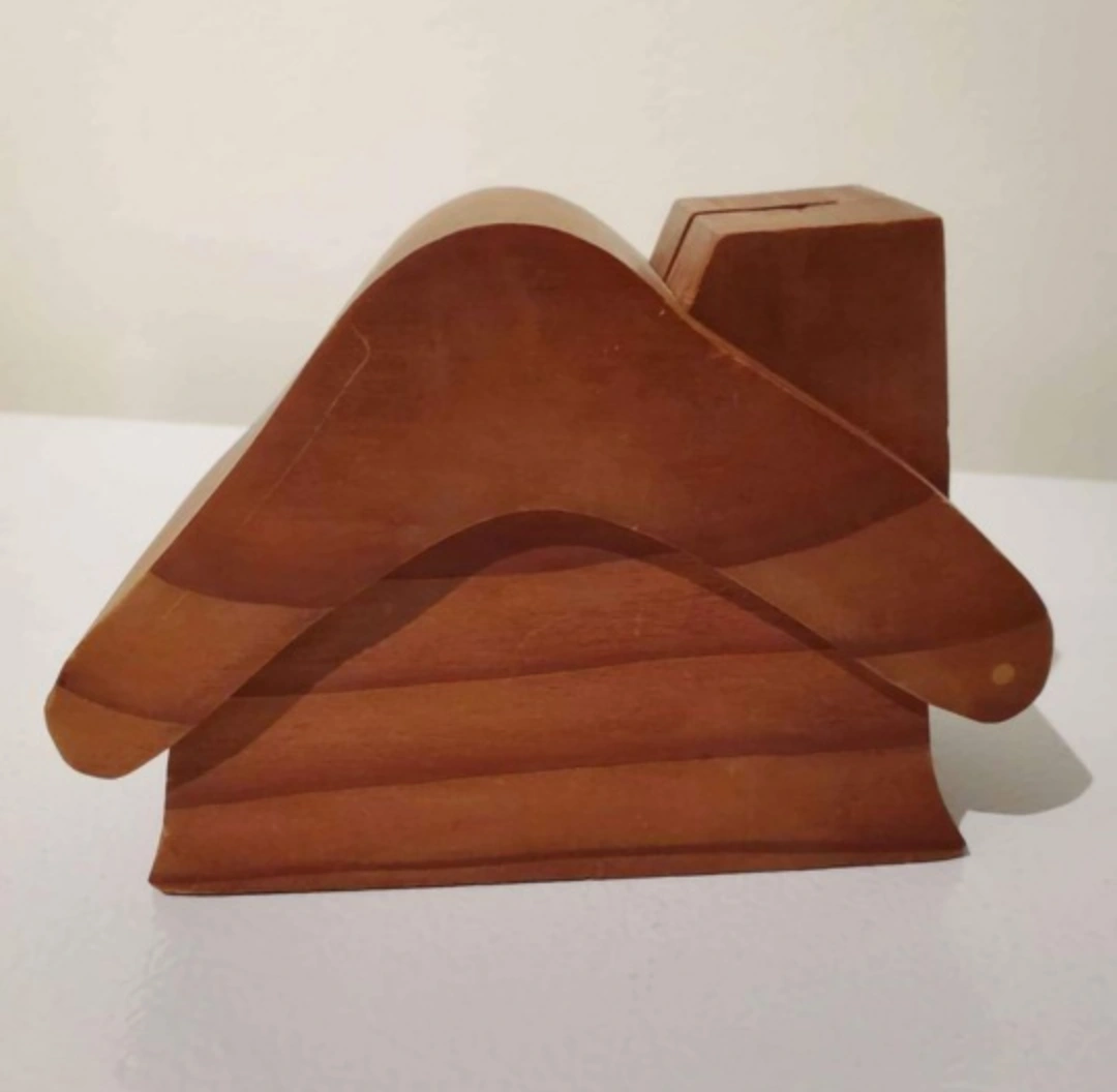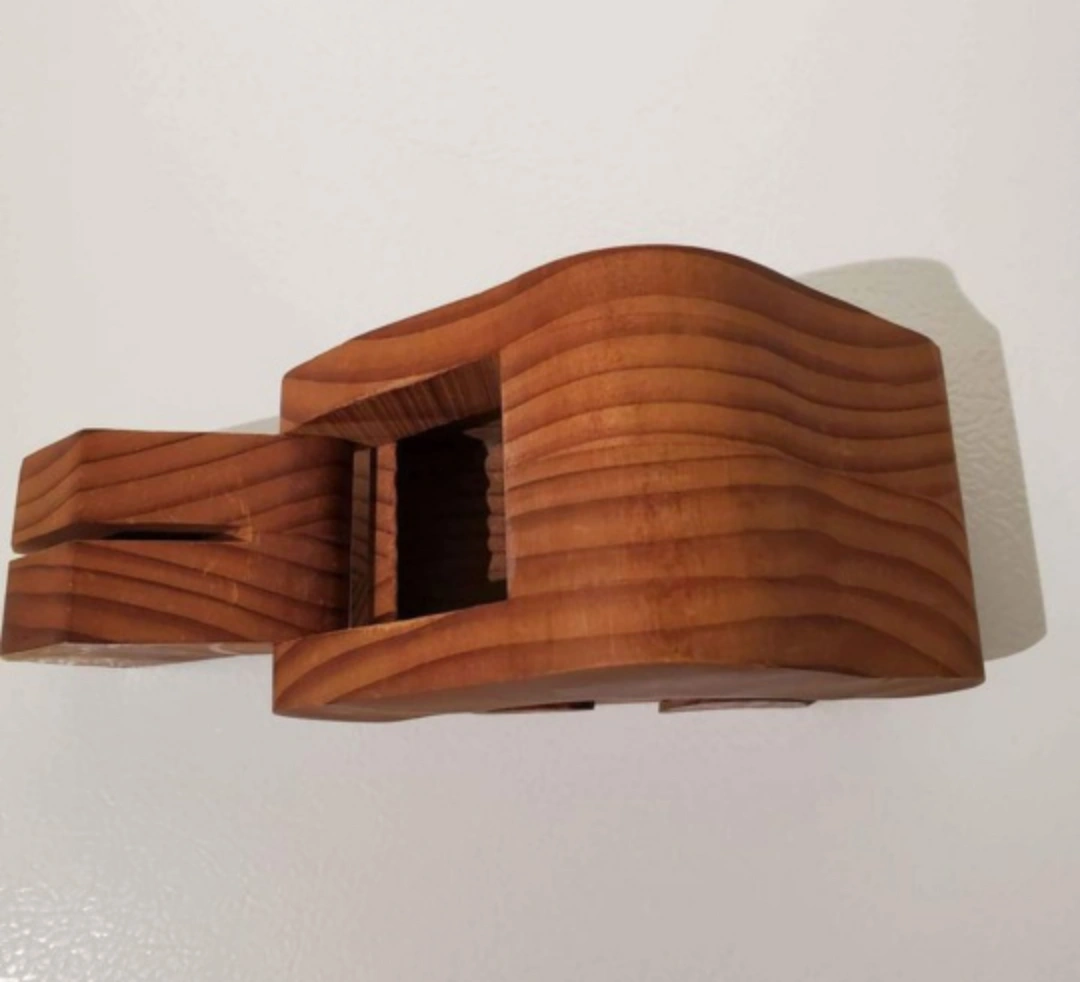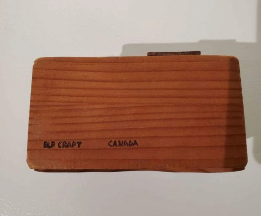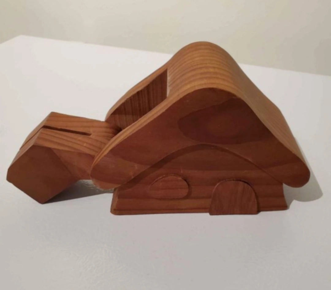 Rare find! Vintage from the 1970's. Adorable rustic solid wood coin bank with flip-out chimney. This woodcraft was made in Canada by Elf Craft. It measures 5 3/4 L x 3" W x 4" H.