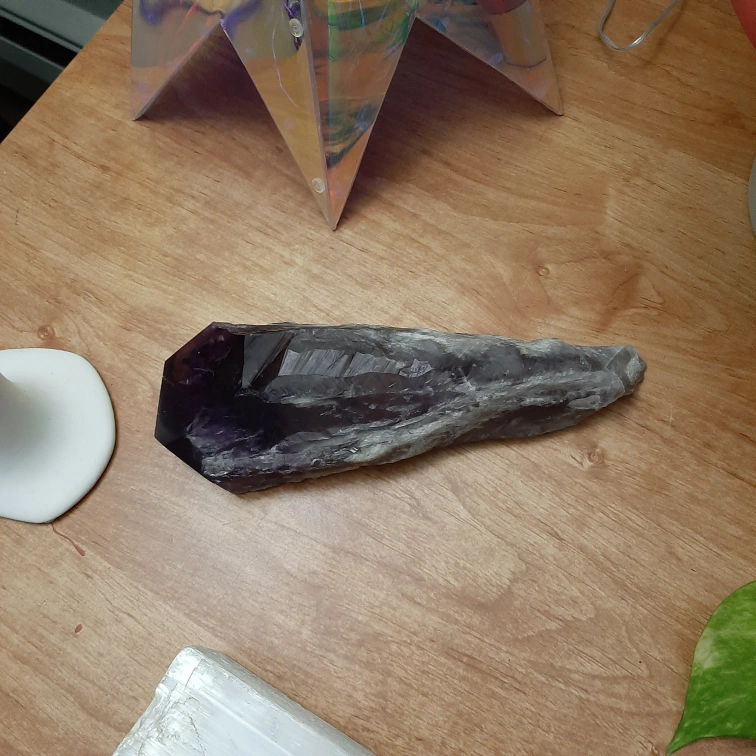 “Introducing a massive amethyst wand—an impressive crystal piece radiating deep purple hues and incredible energy. This large wand is perfect for grounding and amplifying intentions, with a size that makes it a statement piece for any collection. Known for its spiritual properties, amethyst brings calm, focus, and clarity, ideal for meditation, energy work, or simply enhancing your space’s aesthetic. Perfect for those who value both beauty and powerful energy in their crystal collection. Limited availability—add this majestic amethyst wand to your sacred space!”