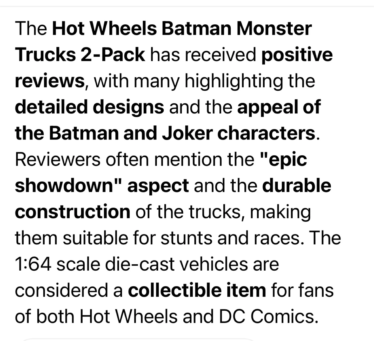 Hot Wheels Monster Trucks 2-pack featuring Batman vehicles! It's still in its original packaging.