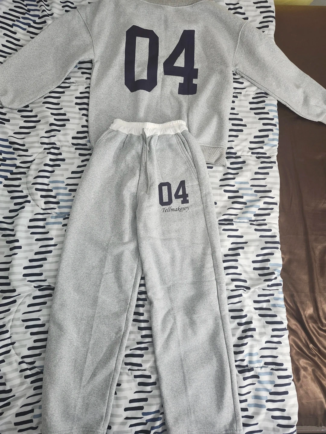 Grey Sweatshirt and Jogger Set with '04' Graphic
