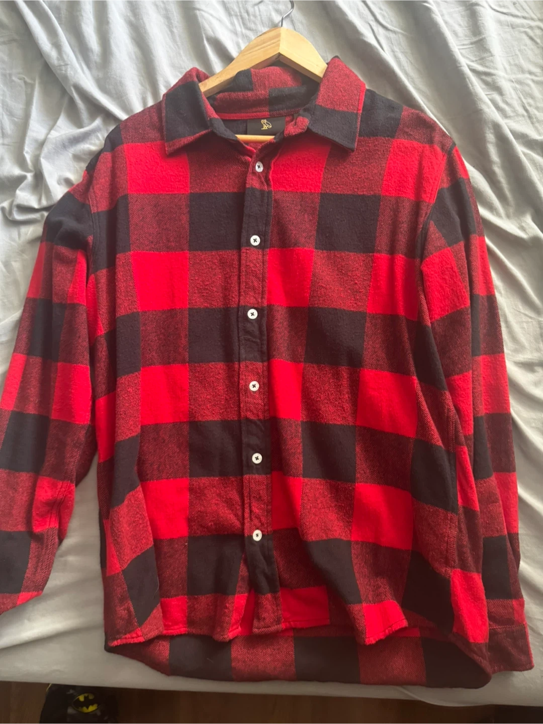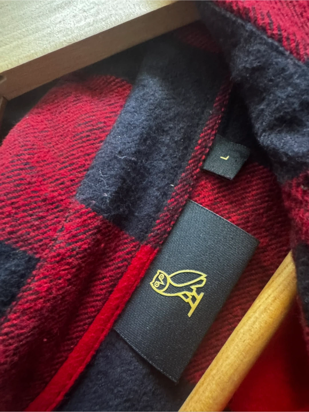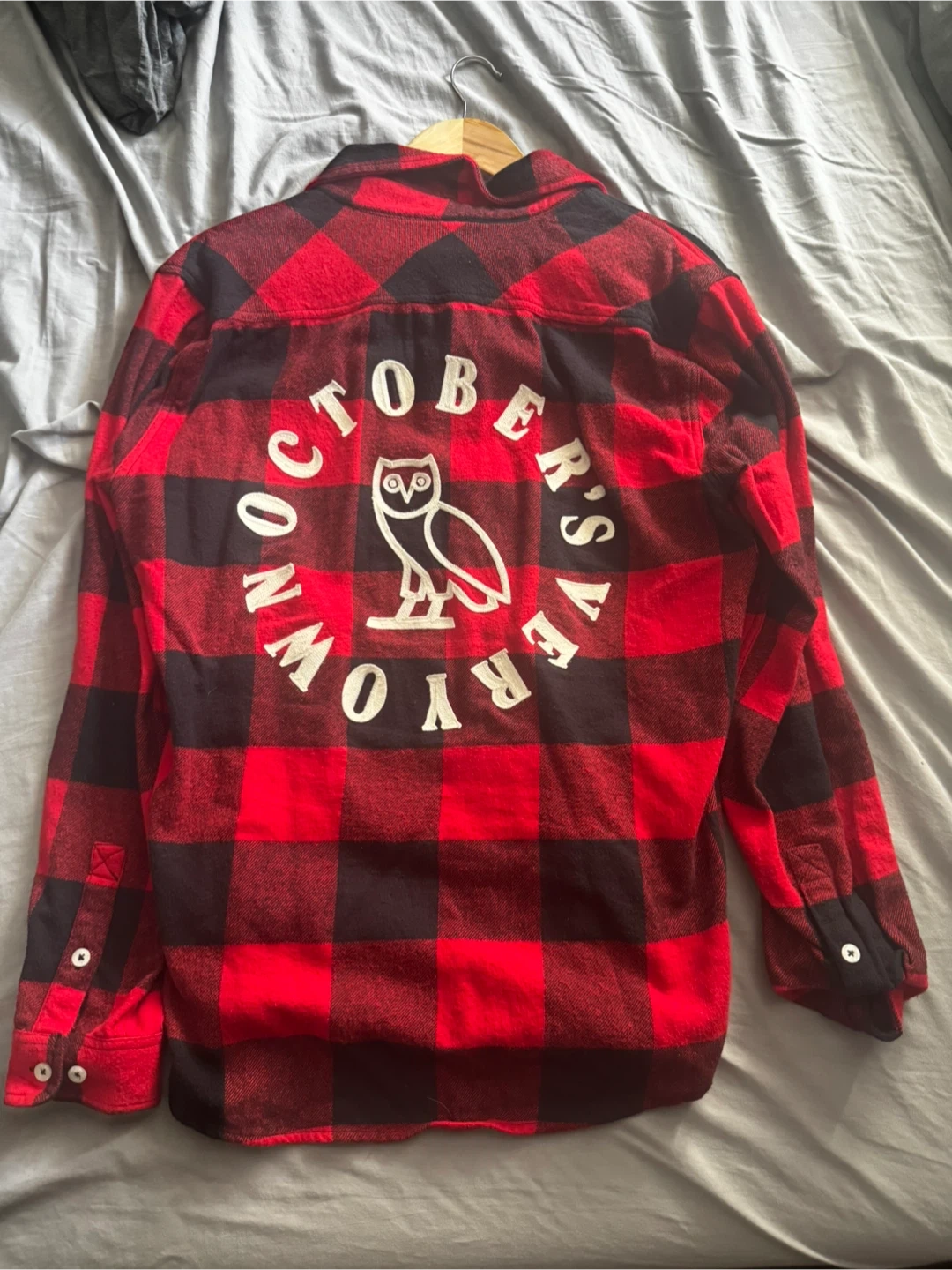 Selling an OVO (October's Very Own) buffalo plaid flannel shirt in red and black! It's a size large and features the OVO owl logo on the back. A stylish and cozy addition to your wardrobe! Selling Online $270-300 USD