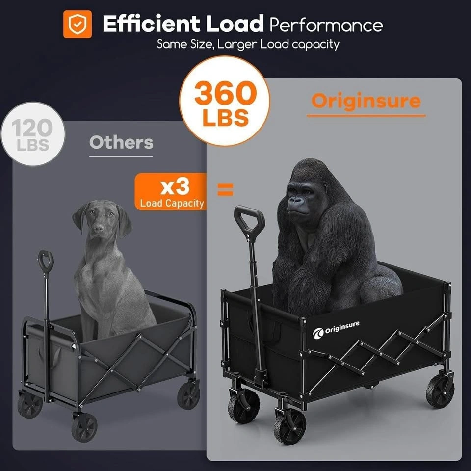 Collapsible Wagon Cart Foldable - Lightweight Portable Heavy Duty Folding Beach Wagons with Wheels - Outdoor Utility Carts for Grocery, Camping, Shopping, Sports with Large Capacity - Black