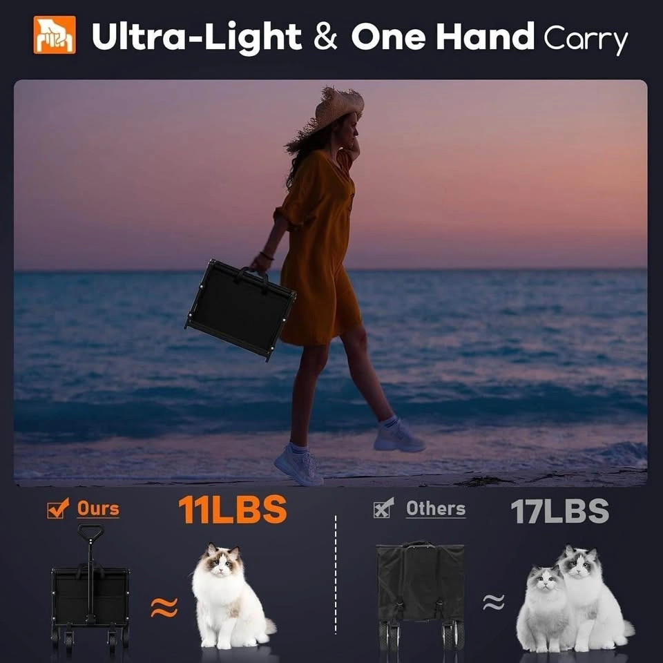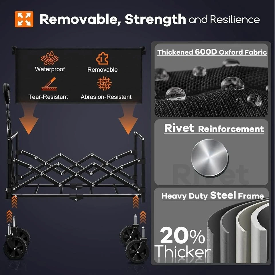 Collapsible Wagon Cart Foldable - Lightweight Portable Heavy Duty Folding Beach Wagons with Wheels - Outdoor Utility Carts for Grocery, Camping, Shopping, Sports with Large Capacity - Black