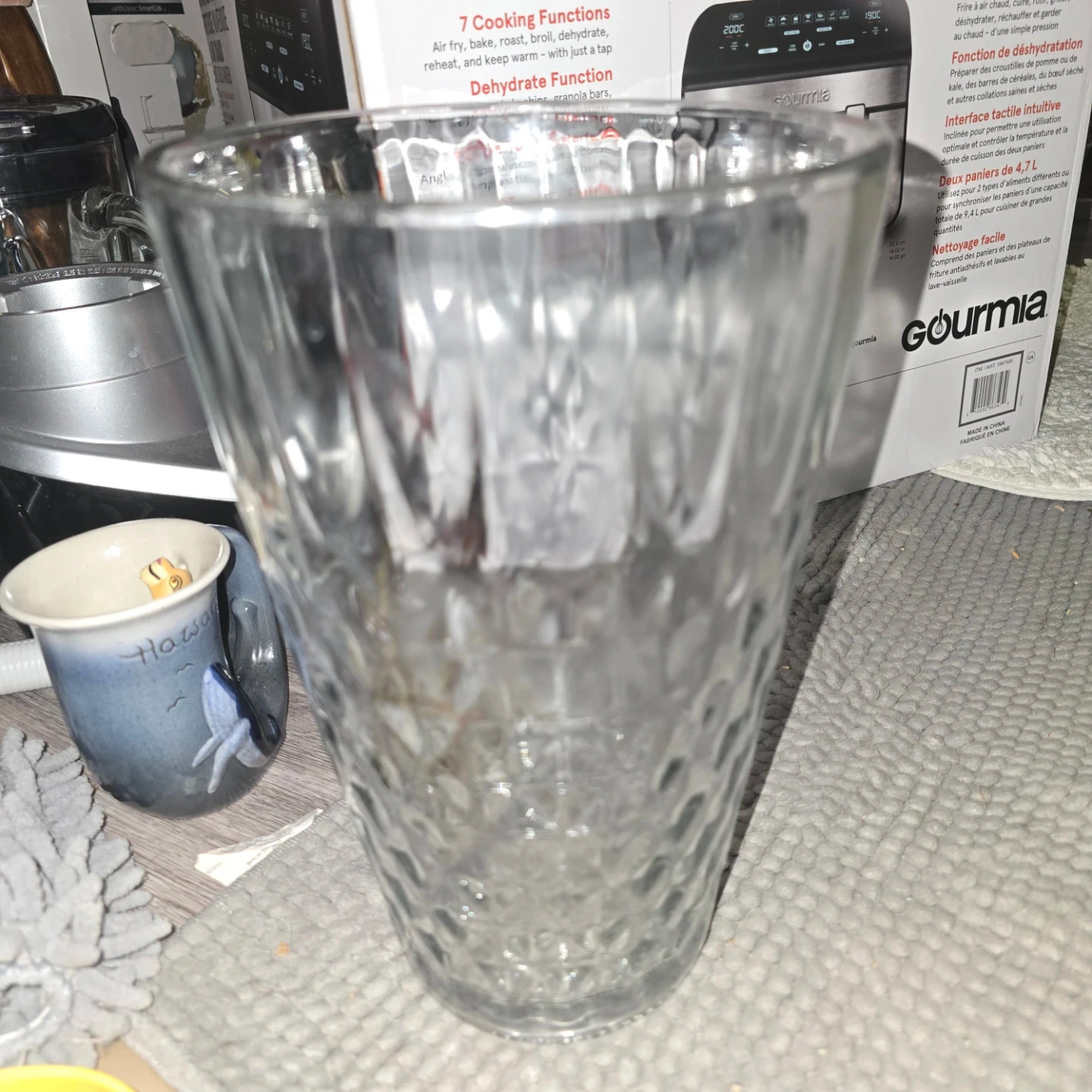 Selling a clear glass vase, perfect for displaying flowers or adding a decorative touch to your home. It's in great condition and ready to brighten up any room