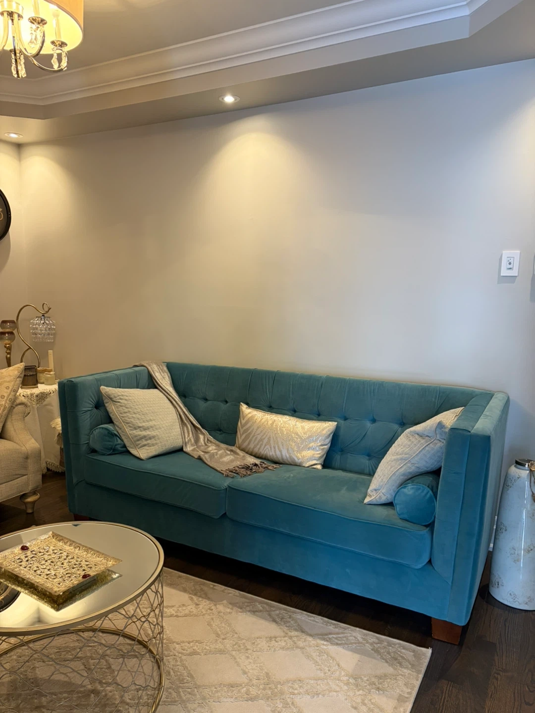 Teal Blue and Beige Sofa for Sale