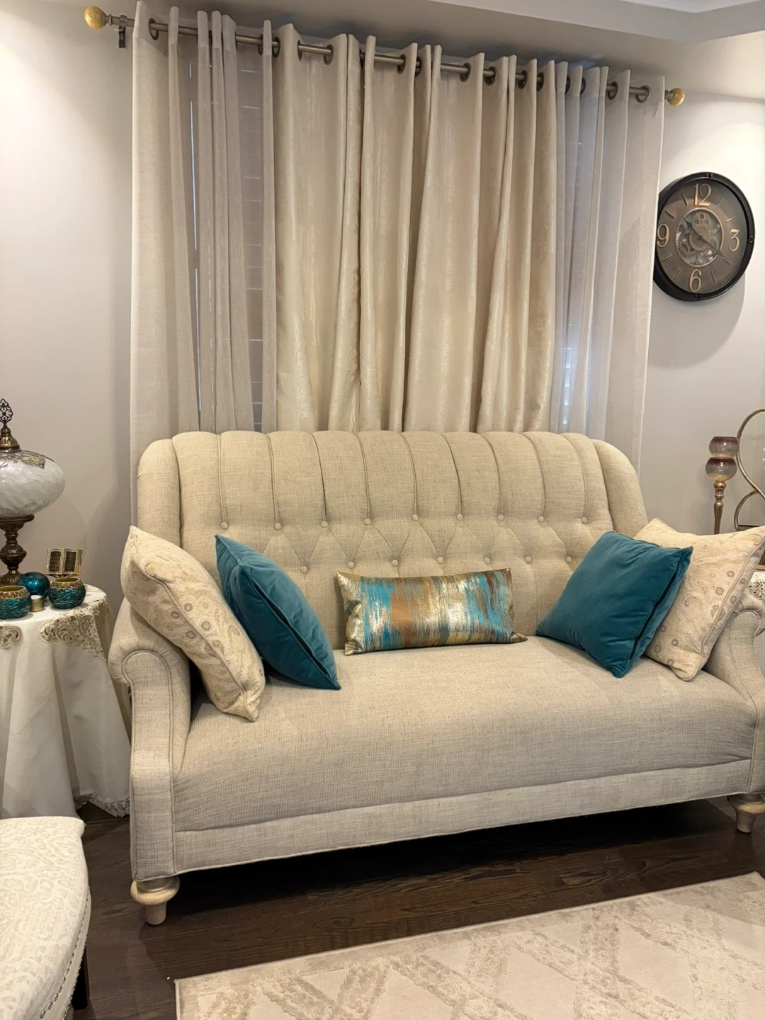Selling both sofas for $800. Open to negotiation! Sofas come with the decorate pillows. If you’re interested in the carpet as well, let me know!