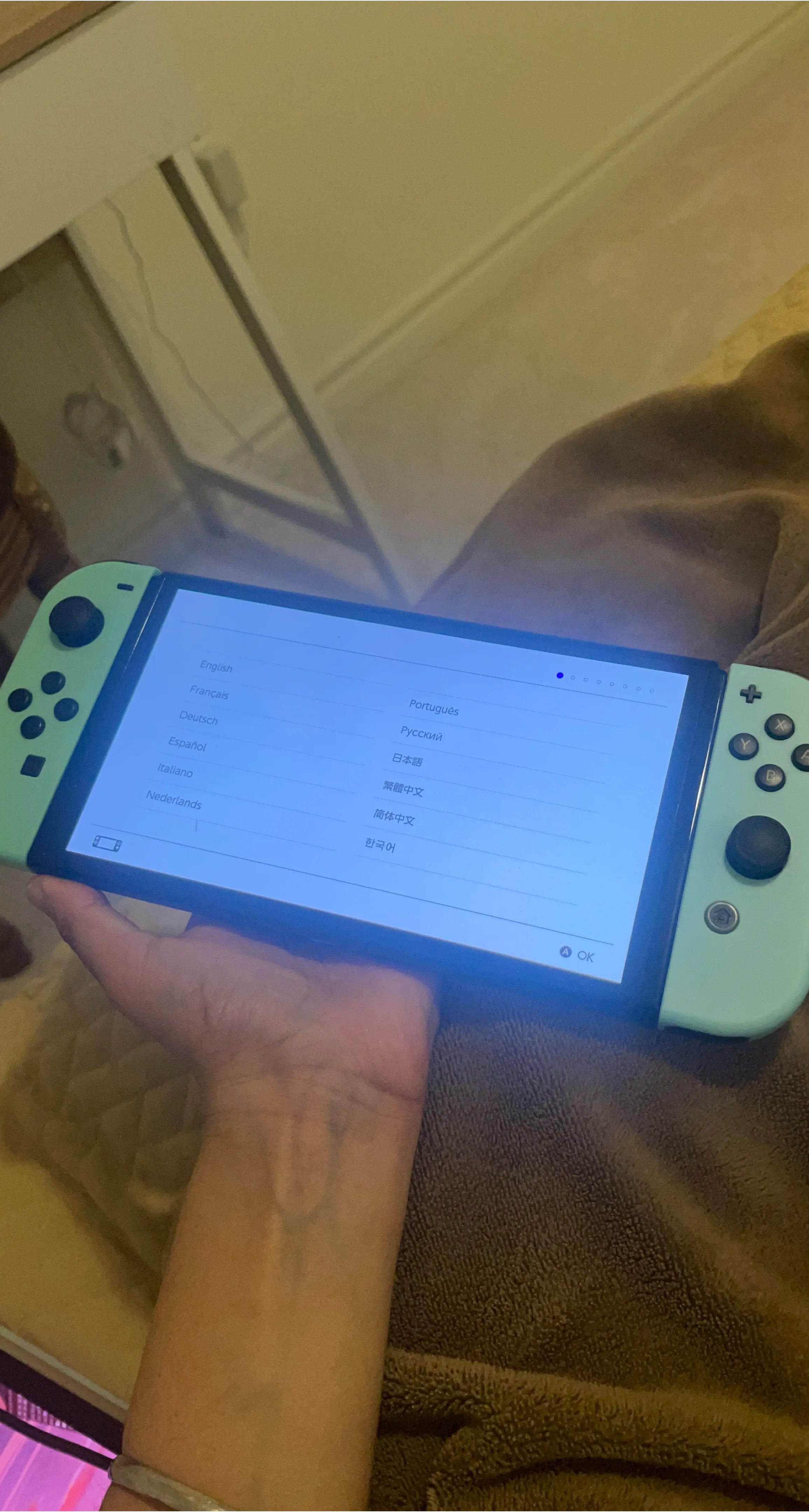 It's a Nintendo Switch Lite in mint green. This handheld gaming console supports a wide range of Nintendo Switch games. Includes the console and a USB-C charging cable.
