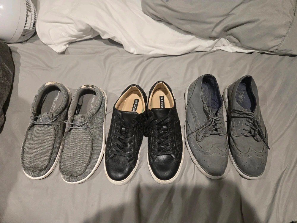 Selling a collection of size 11 men's shoes, including brands like George, Madden, and Dexter Comfort, with various styles available.