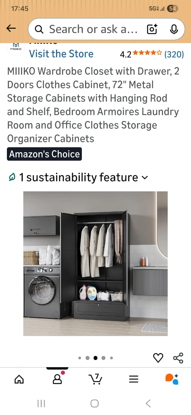This MIIKO wardrobe closet features a drawer and two doors. It's made of metal and includes a hanging rod and shelf. Its dimensions are 72" H x 35.4" W x 17.7" D. This storage cabinet is great for organizing clothes.