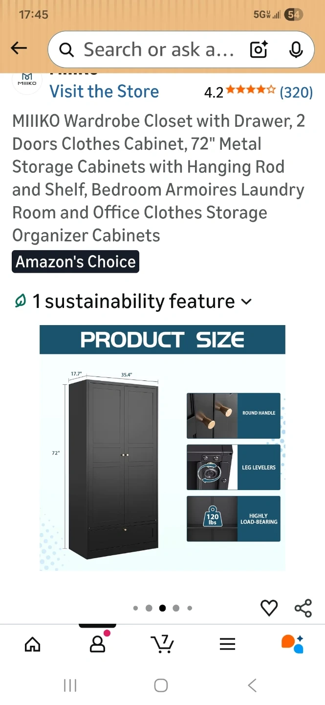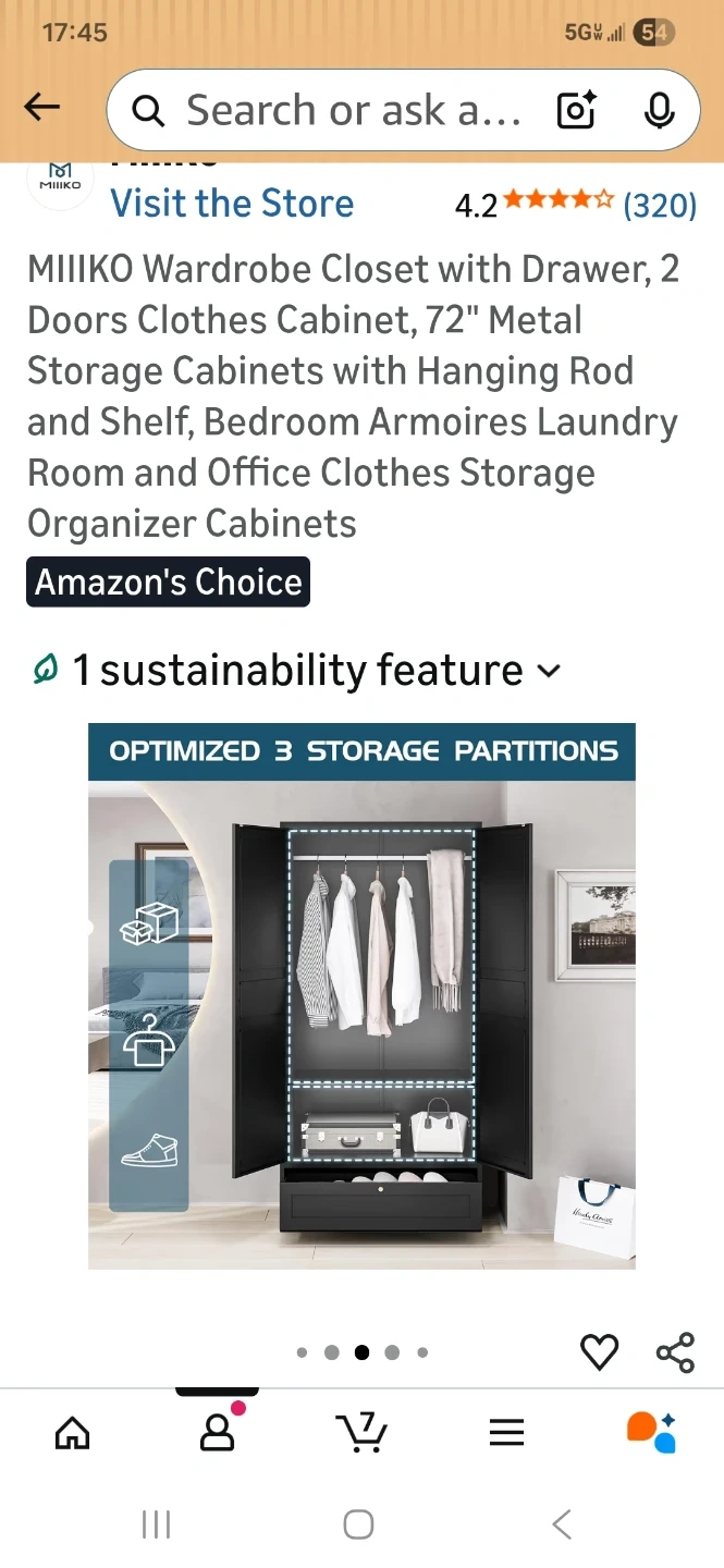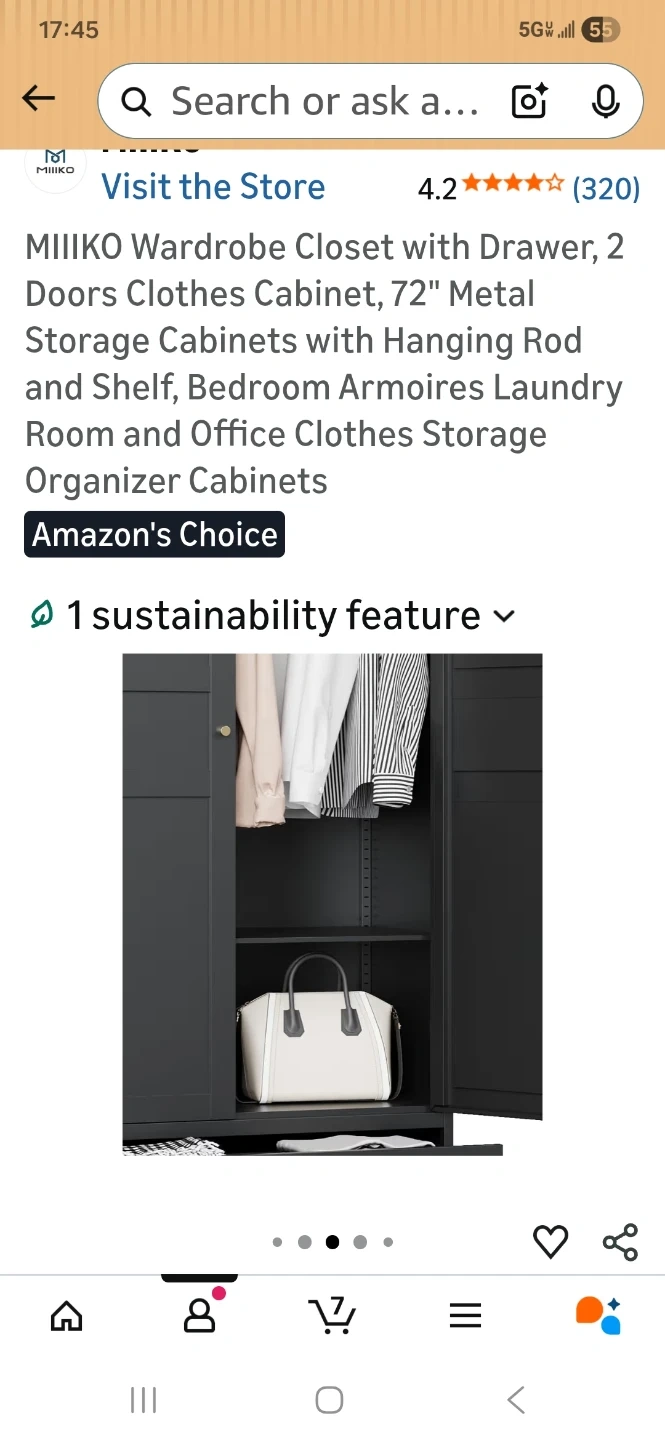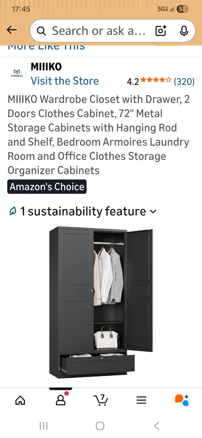 This MIIKO wardrobe closet features a drawer and two doors. It's made of metal and includes a hanging rod and shelf. Its dimensions are 72" H x 35.4" W x 17.7" D. This storage cabinet is great for organizing clothes.