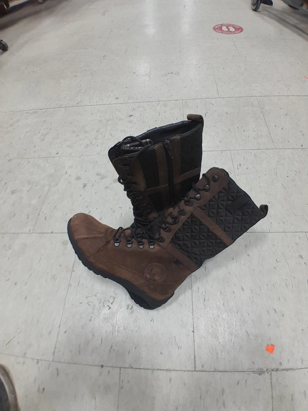 Tall winter boots are made with brown suede and feature quilted detailing on the shafts. They lace up the front and have side zippers for easy on and off. Perfect for keeping your feet warm and dry during the colder months! Original All Rounder Classic Size 8.5