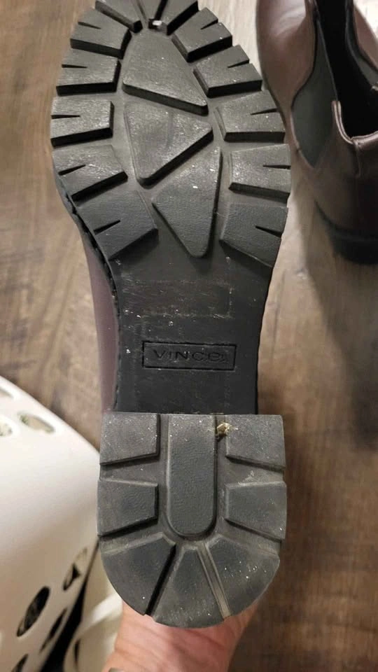 Slightly used, stylish, comfy heeled leather boots, lug chelsea, nice heeled boots, brownish maroon in color