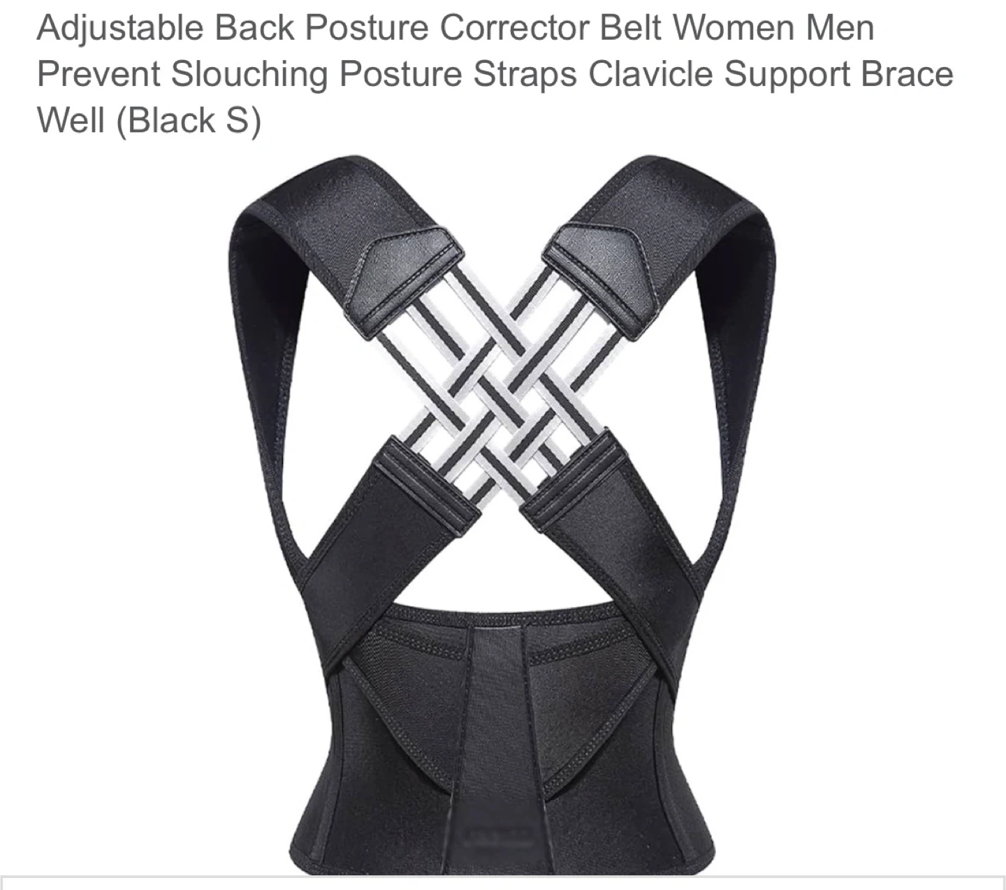 This is a back posture corrector belt for men and women. It helps prevent slouching and provides clavicle support. Made of durable material.
