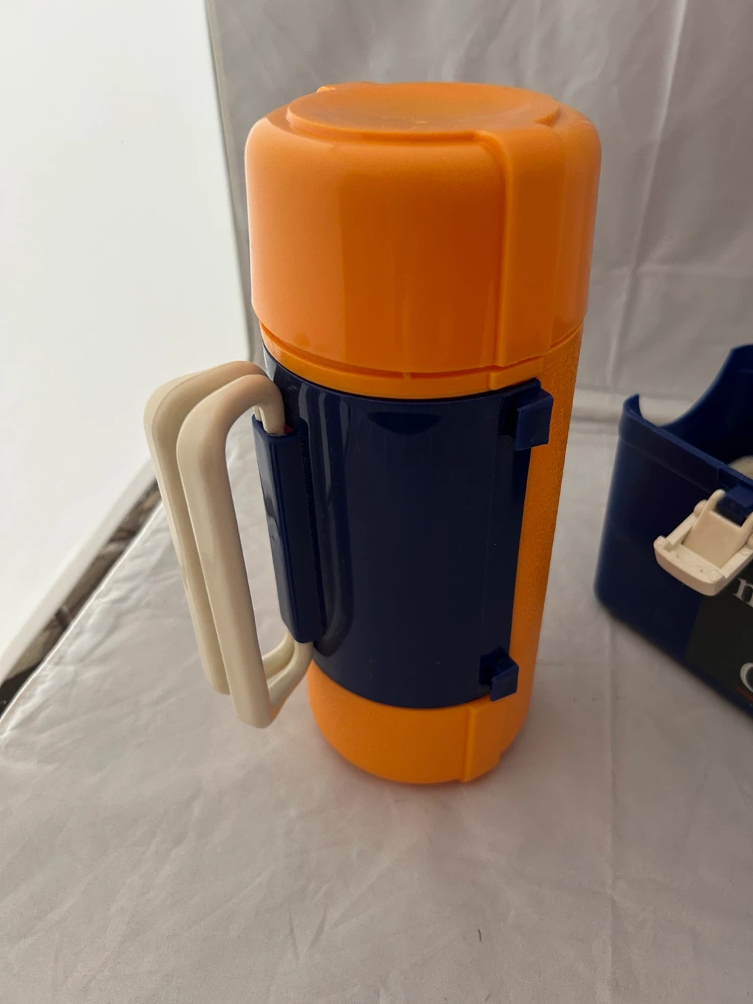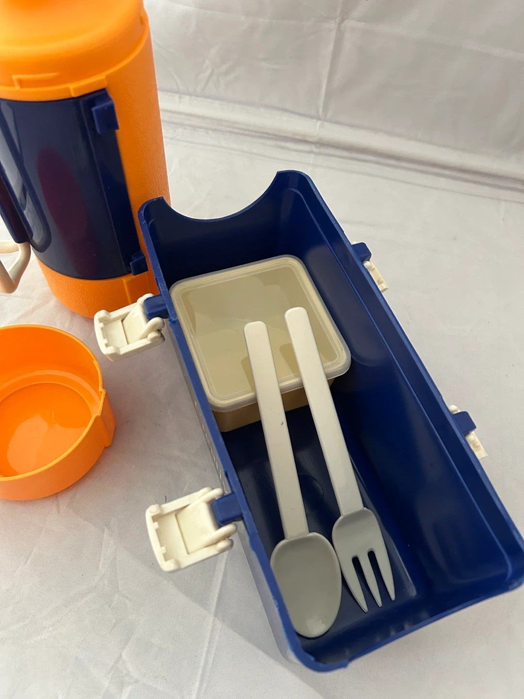 This lunchbox comes with a water container, a bowl, a food container, spoon and fork. New, never used. Also great for collector or someone looking for a unique lunchbox!
