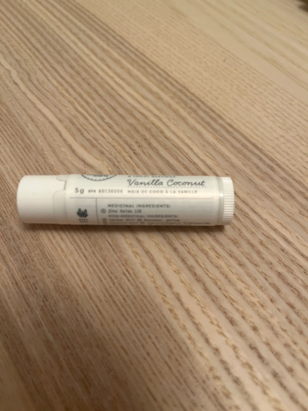Free Rocky Mountain Soap Co. Vanilla Coconut Lip Butter. It's broad spectrum SPF 15, made with zinc oxide and local beeswax, and has a lovely vanilla coconut scent. It expires in October 2025. Perfect for an upcoming trip or daily use.