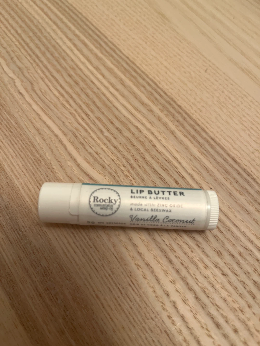 Free Rocky Mountain Soap Co. Vanilla Coconut Lip Butter. It's broad spectrum SPF 15, made with zinc oxide and local beeswax, and has a lovely vanilla coconut scent. It expires in October 2025. Perfect for an upcoming trip or daily use.