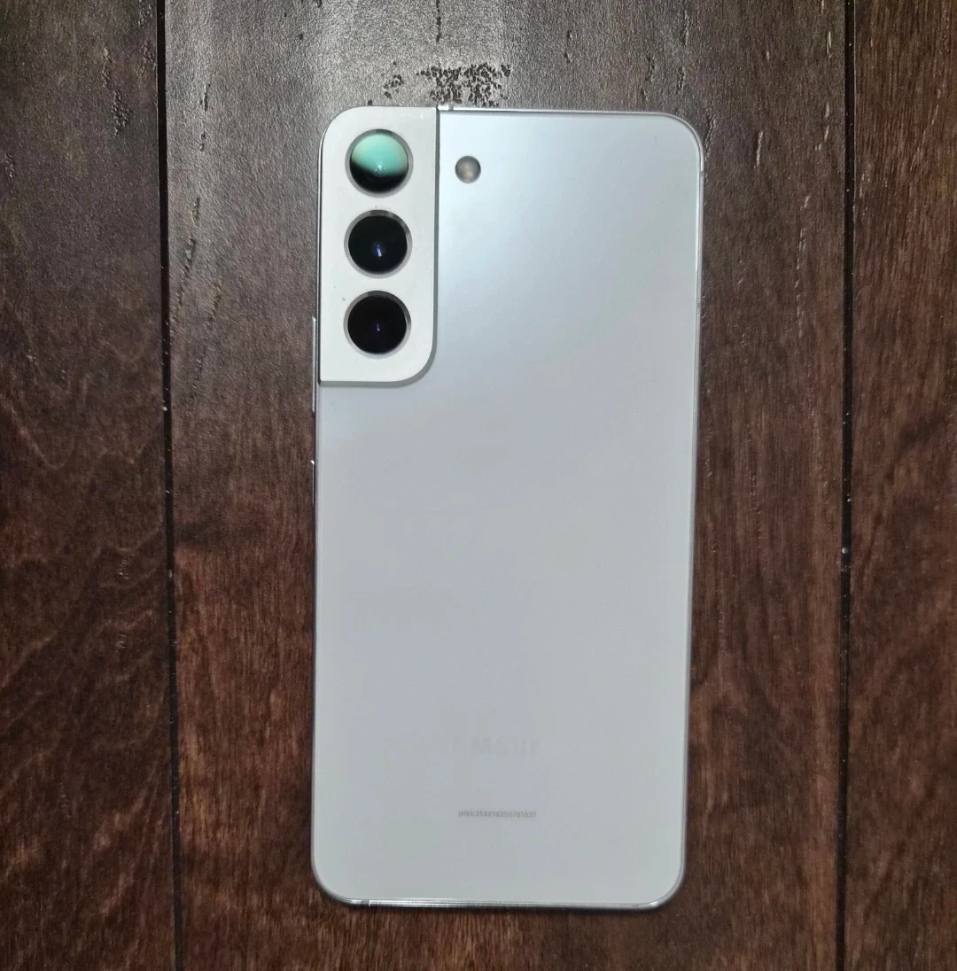 Selling a Samsung Galaxy S22 smartphone in silver. Device in good condition with minimal scratches on the front screen can negotiate price if resonable