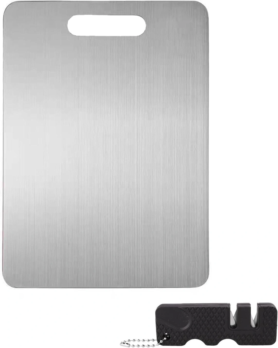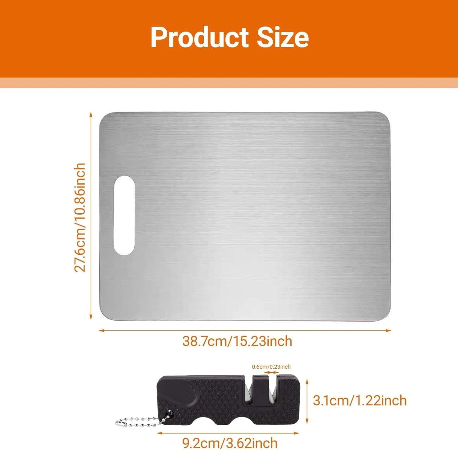 Stainless Steel Cutting Board w/Bonus Knife Sharpener – New