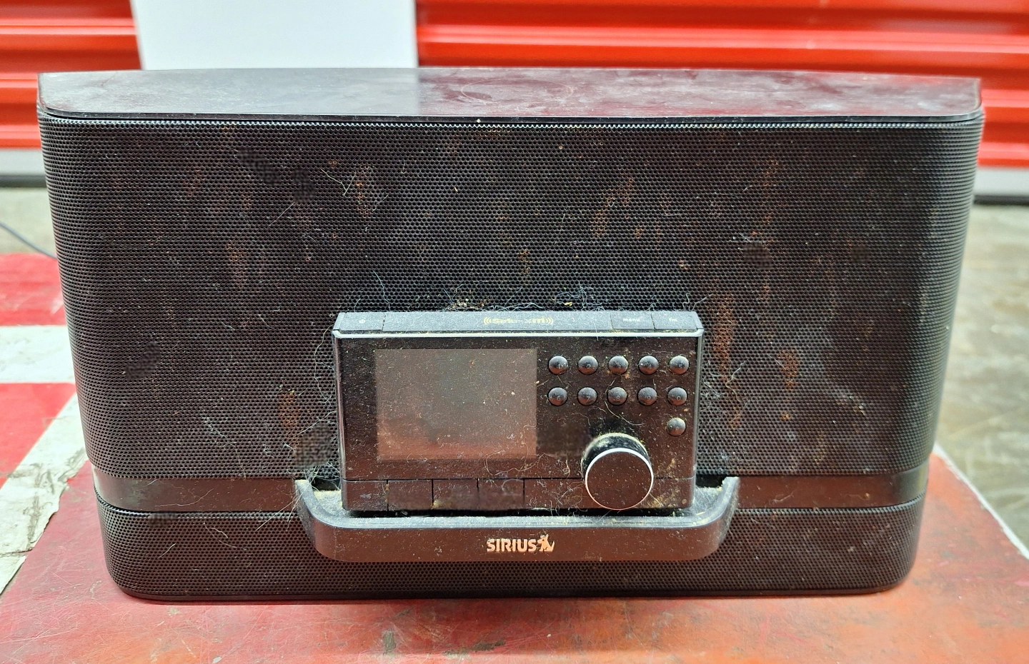 Satellite radio receiver with a home kit with built-in speakers. Dusty but functional.