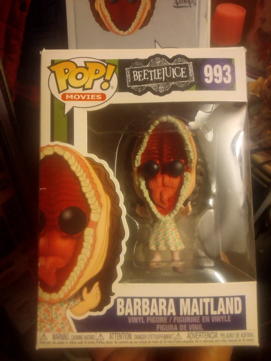 This is a Funko Pop! vinyl figure of Barbara Maitland from Beetlejuice, number 993. It's a collectible movie figure. Figure in box.