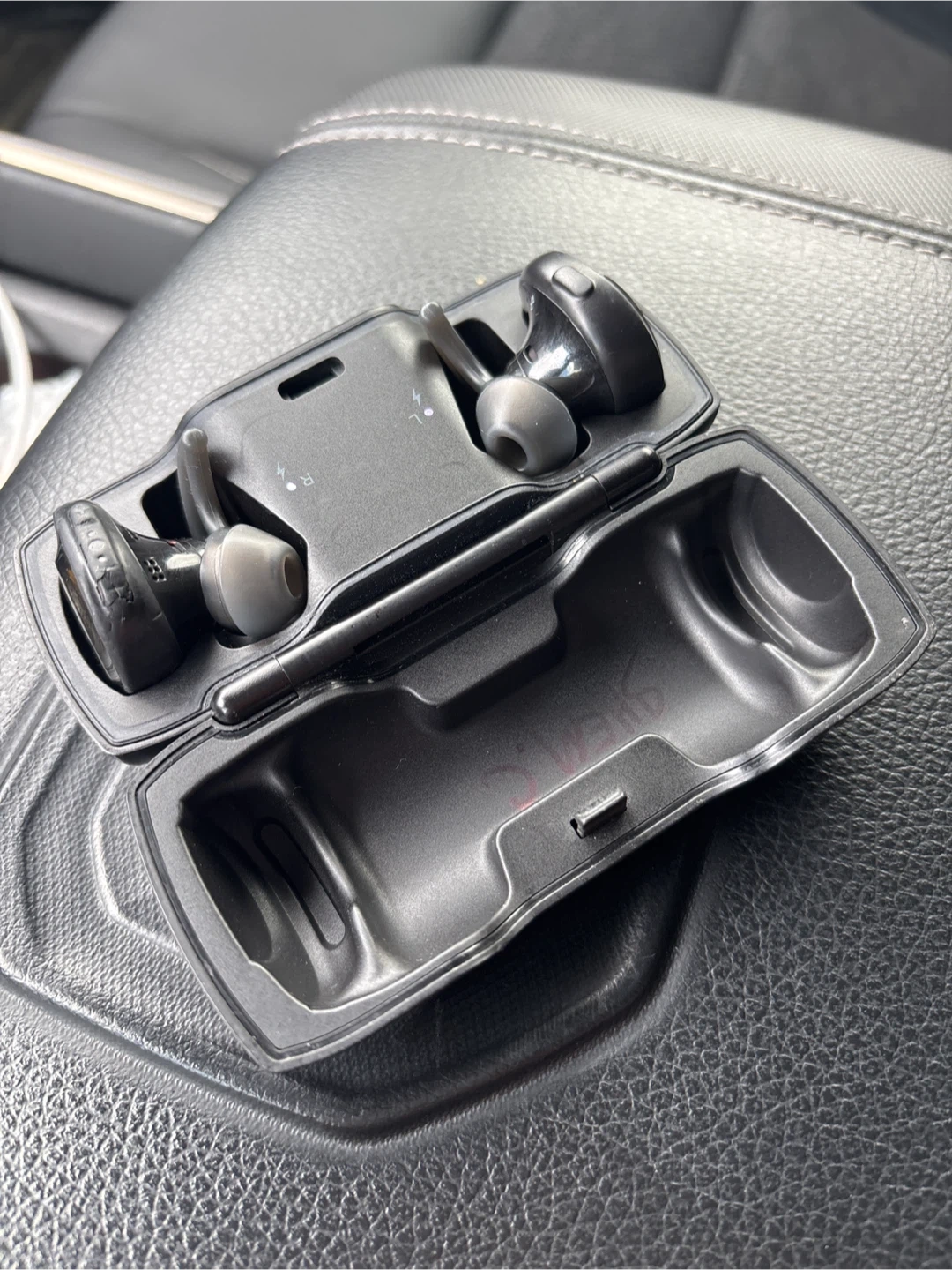 Bose soundsport wireless earbuds. Case/charger works good. No damage, slight wear and tear. Holds 80% charge per earbud. Case holds 100% charge, and can recharge about 5 times.
