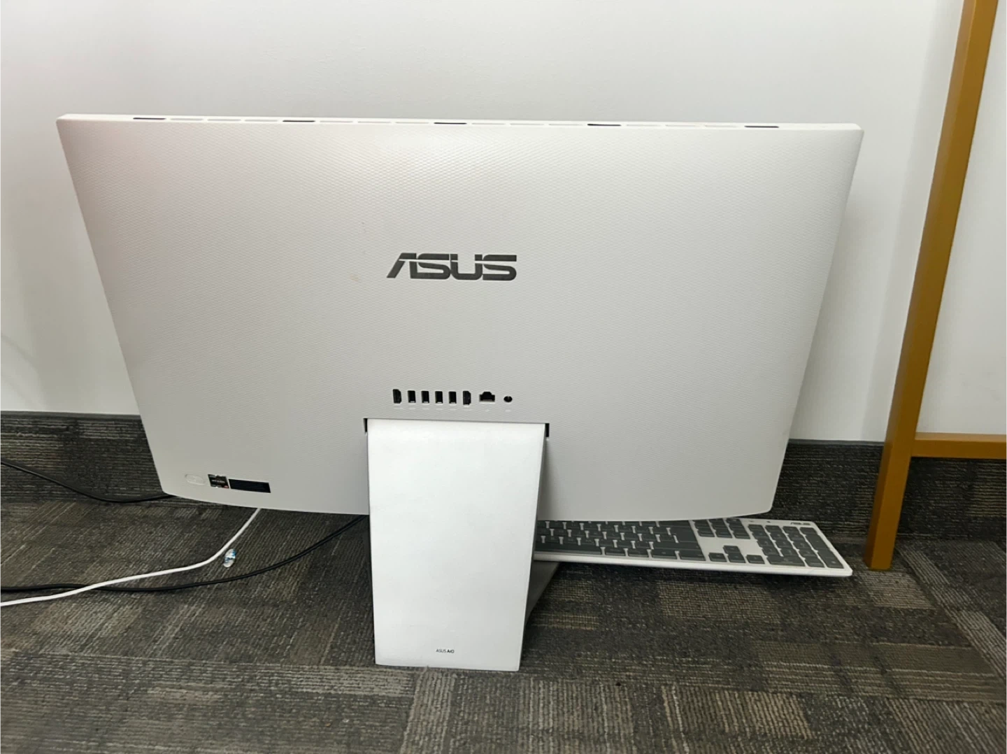 This is an ASUS All-in-One PC with a white finish. It comes with a matching keyboard. It's a great option for a home office or general use computer.