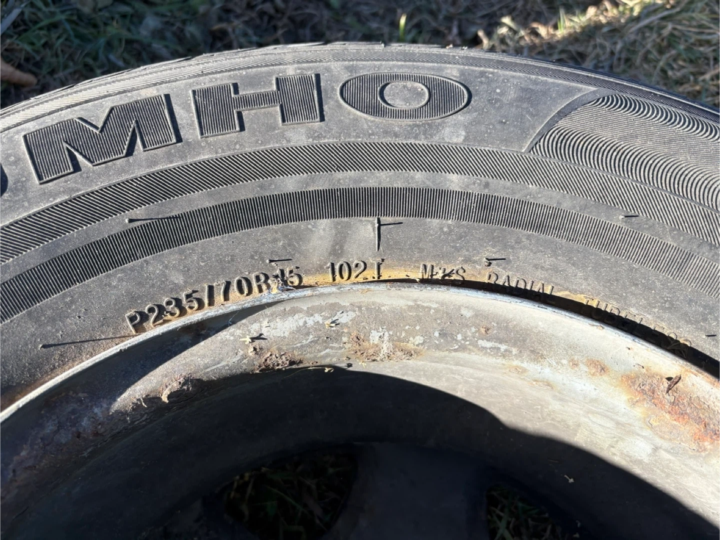 67Selling set of used Kumho Solus KR21 tires. The size is P235/70R15. It is showing signs of wear and tear, but still has some life left in it. Please see photos for condition! 25$ for each one , 90$ for 4 tires all . Pick up at Banff Trail NW