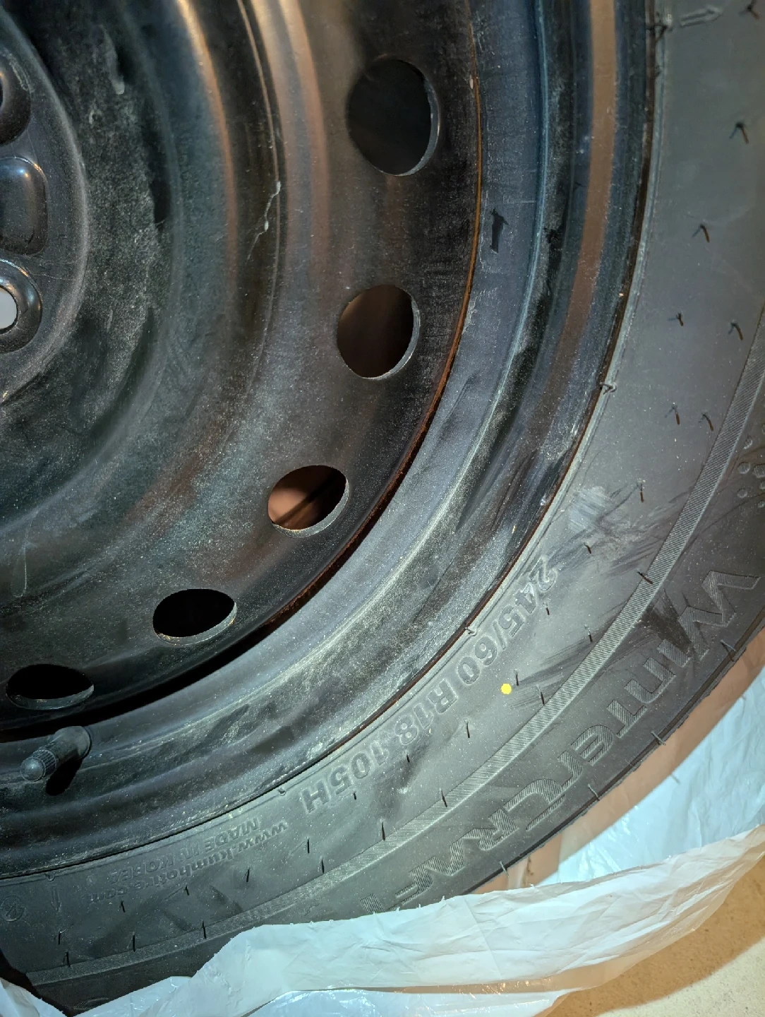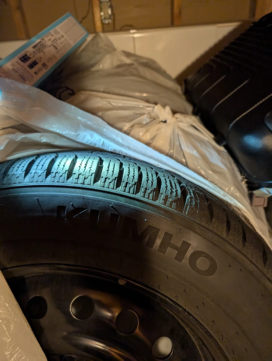 18Kumho winter tires with very little use. 245/60/R18 year of manufacture 2023, good condition, were from a 2019 Highlander. With a set of 18" steel wheels. 5x114.3. , Center bore size 60.1mm , only rolled one winter. Neumáticos de invierno kumho con muy poco uso. 245/60/R18 año de fabricación 2023., buenas condiciones, eran de un Highlander 2019. Con Set de rines de acero 18". 5x114.3. diámetro del centro 60.1mm , solo rodaron un invierno