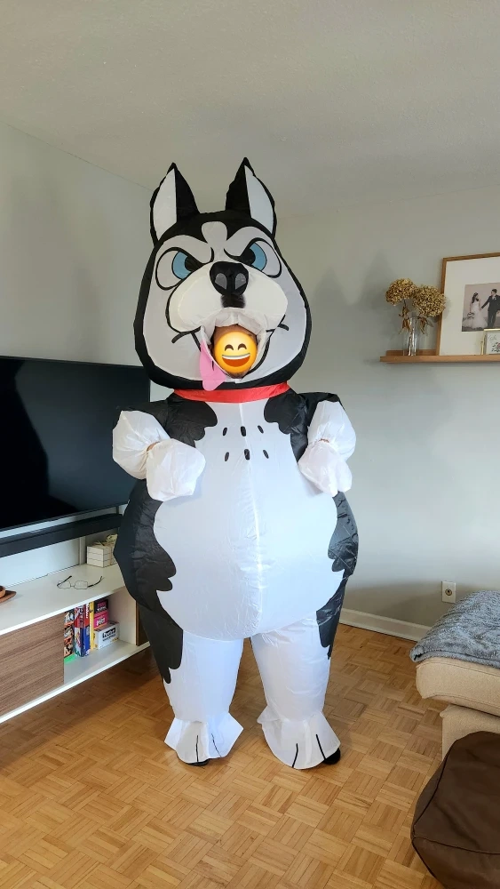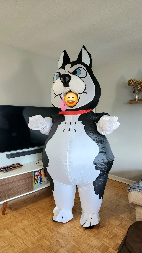 Make your event or photoshoot extra fun with this Husky Dog inflatable costume! Whether it’s a birthday party, costume event, creative photoshoot, baby shower, etc., this costume is guaranteed to add excitement and laughs.
