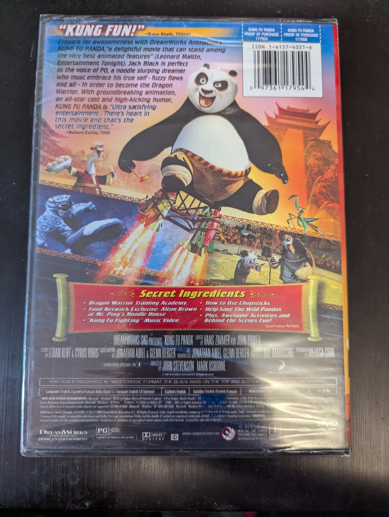 DVD of the movie Kung Fu Panda. Widescreen format. Includes special features.