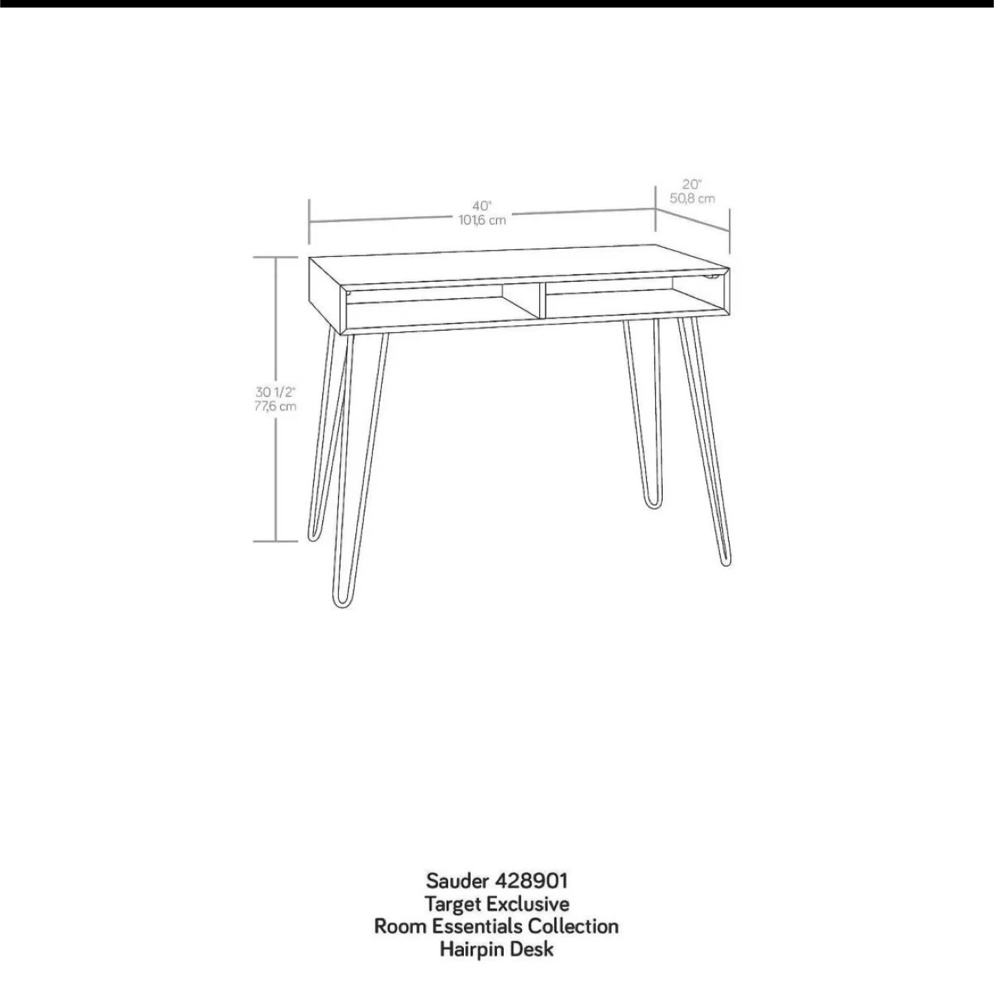 Brand-new modern writing desk, never used, still sealed in original box. Walnut finish with black metal hairpin legs and two open storage compartments. Perfect for home office, study, apartment, or dorm.