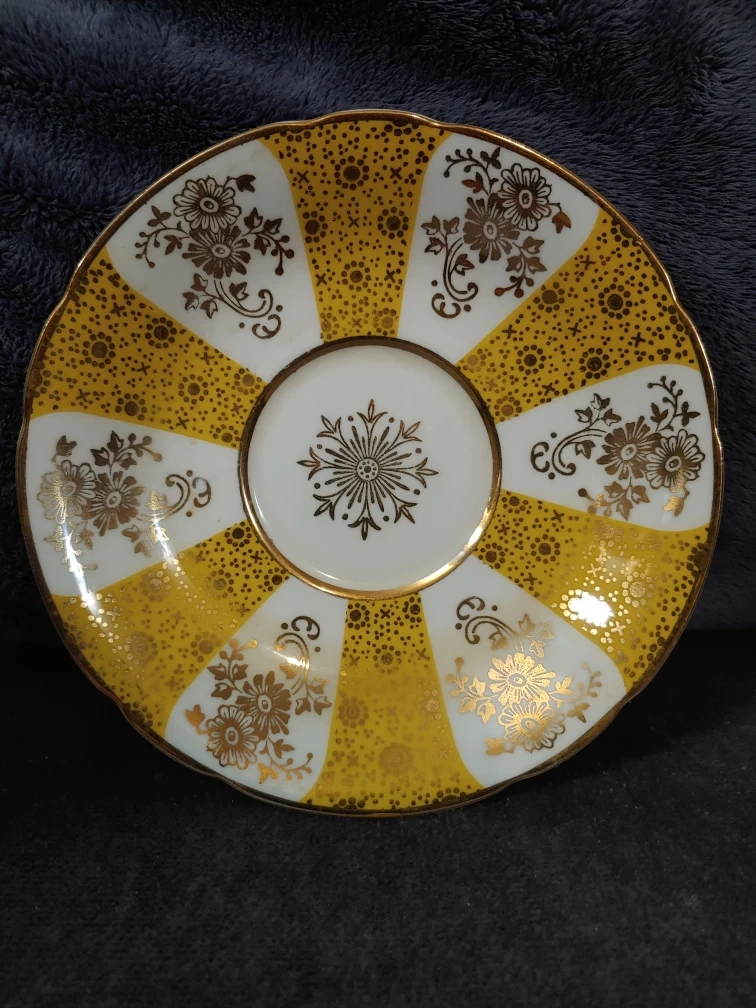 Selling a Paragon fine bone china saucer. It has a beautiful gold and white floral design. The saucer is in excellent condition and would be a lovely addition to any tea set
