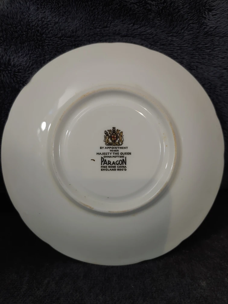 Selling a Paragon fine bone china saucer. It has a beautiful gold and white floral design. The saucer is in excellent condition and would be a lovely addition to any tea set