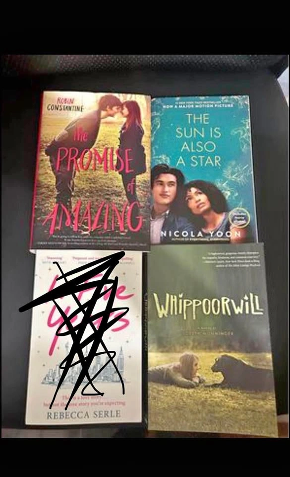 This is a set of four novels: "The Promise of Amazing", "The Sun is Also a Star", and "Whippoorwill". The books are in best condition. $5 each novel. 3 novels left- please check my other listings. Thanks!