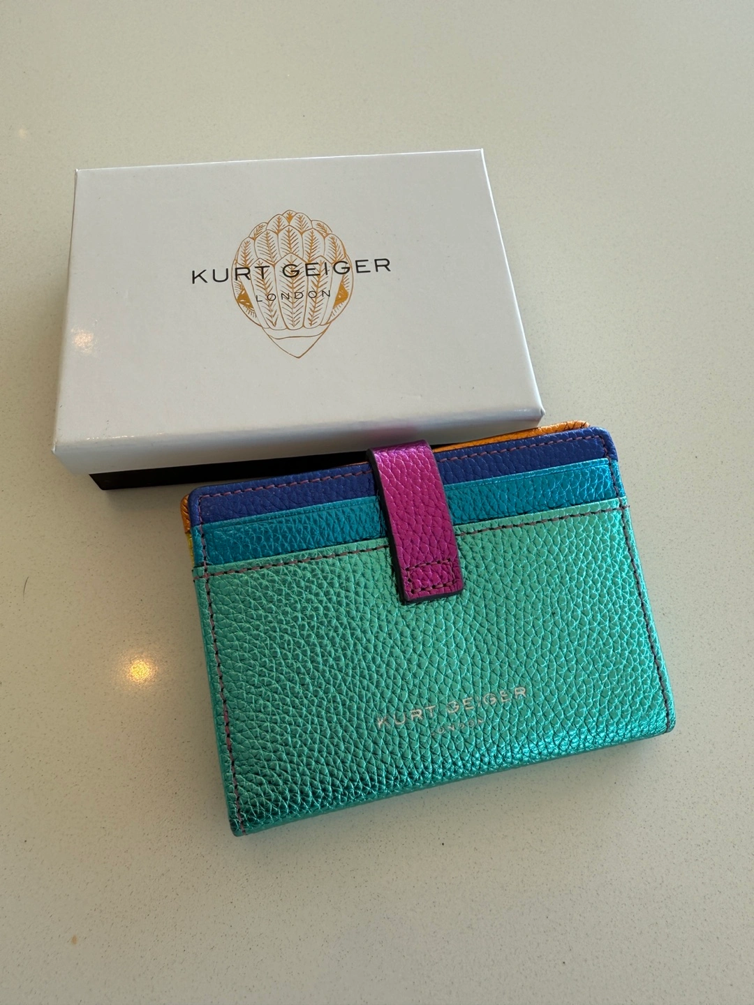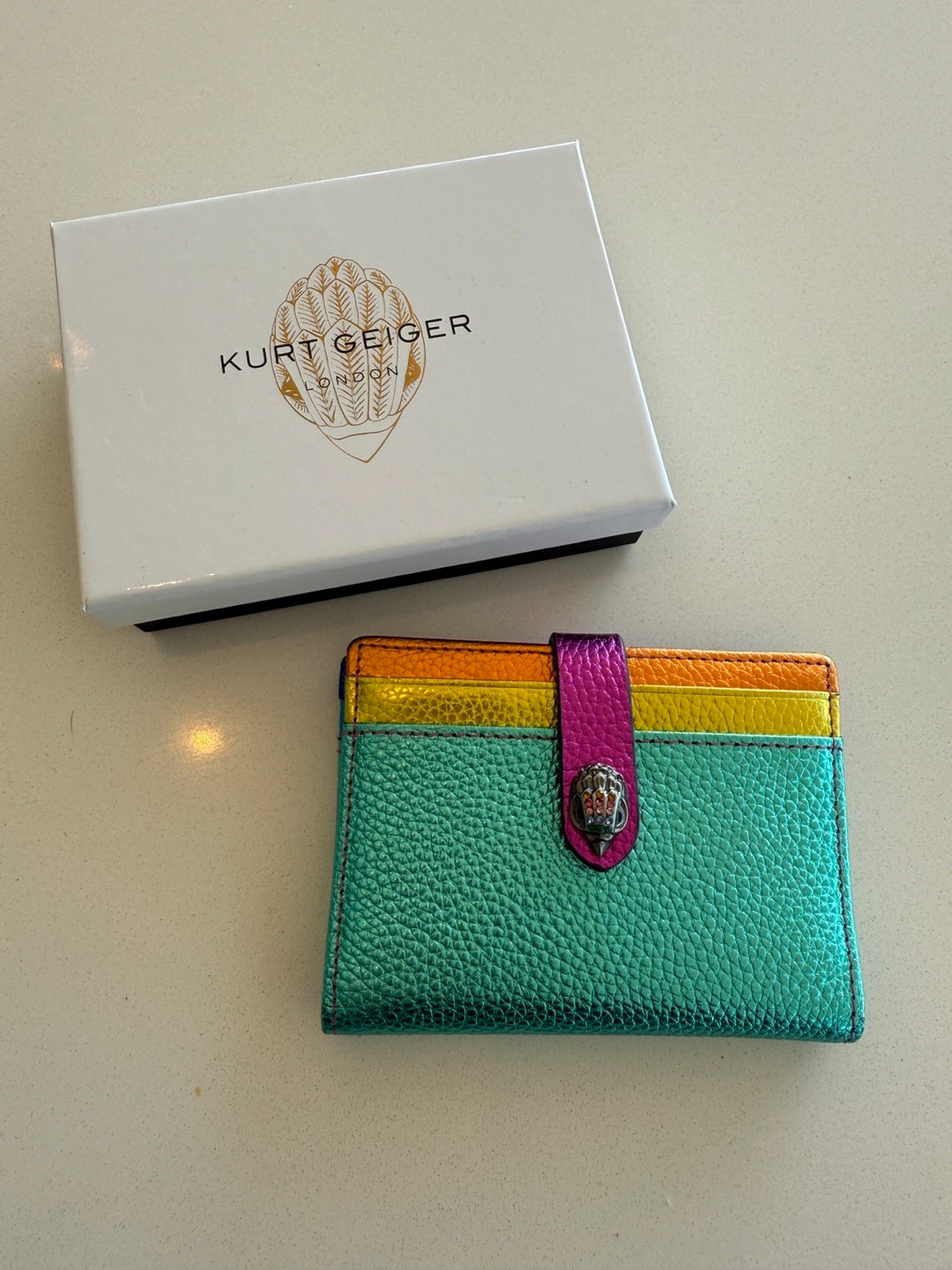 24A colorful card holder. Features multiple card slots. A flap closure. Comes with original box.