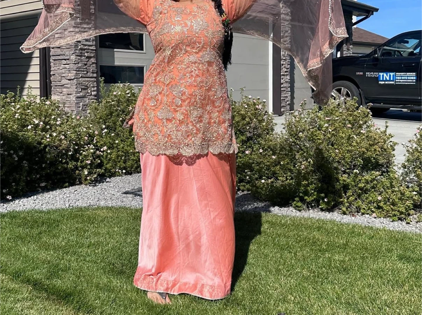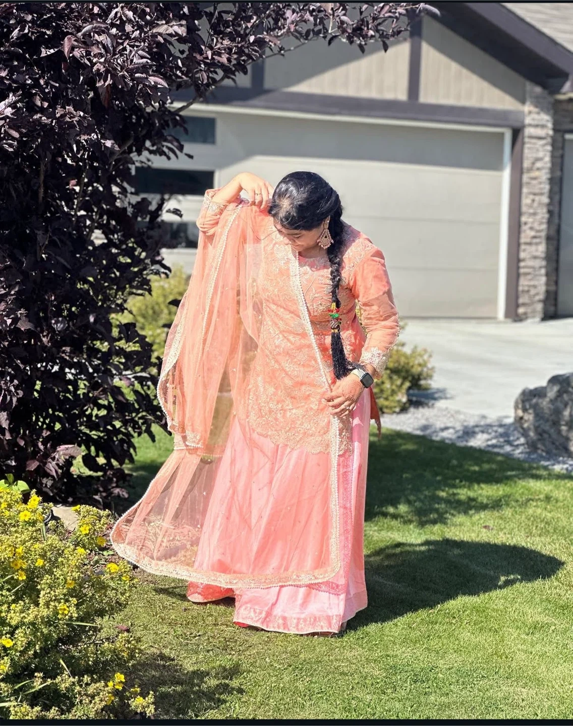 Beautiful peach color with bead work done set in size large
