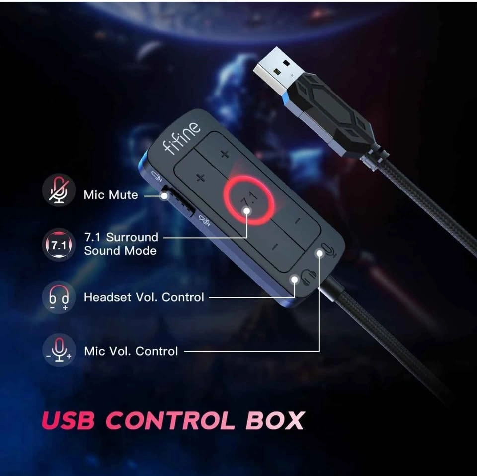 Fifine PC Gaming Headset with USB/3.5mm Jack for Laptop Computer, Over Ear Wired Headphones with 7.1 Surround Sound, Detachable Microphone, Volume Control, Noise Cancelling for PS5/Xbox/Switch-H9.
