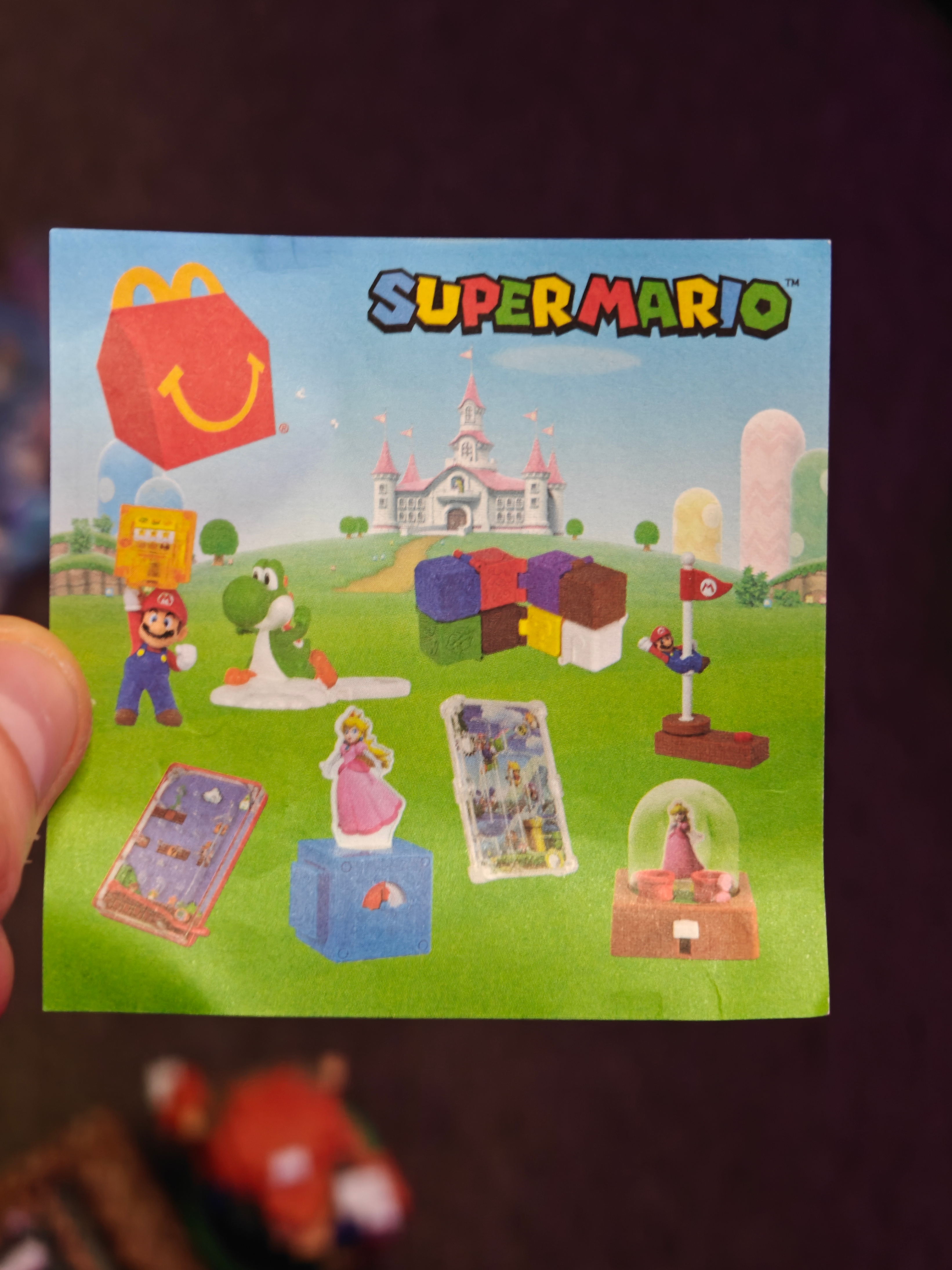 Full set of 8, still in the plastic! Comes with doubles of the pinball & mario with the mystery block.