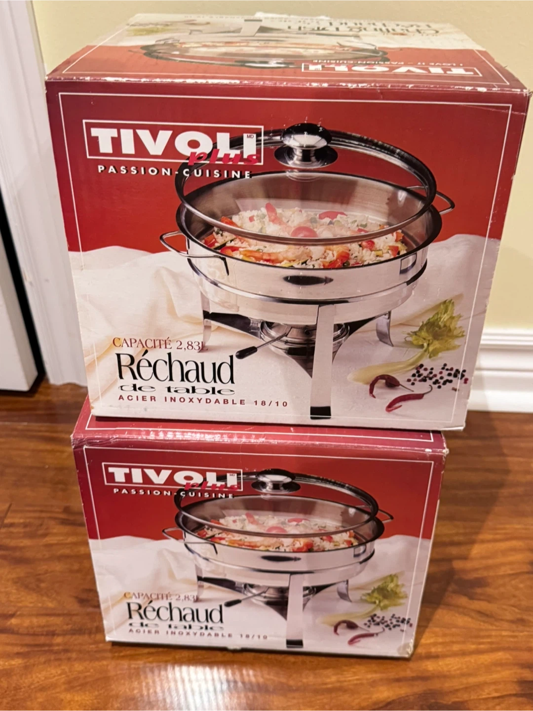 Tivoli "Réchaud" chafing dish with a 2.83L capacity. It's made from 18/10 stainless steel. This chafing dish is great for keeping food warm.