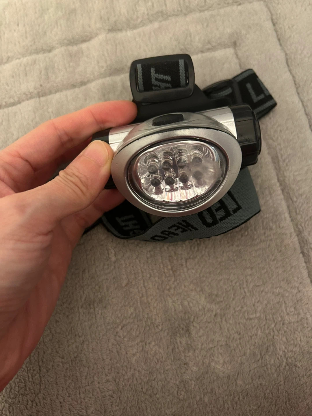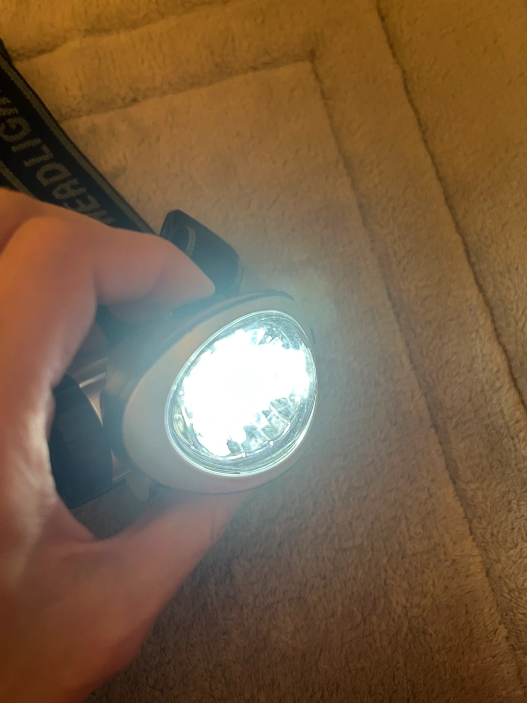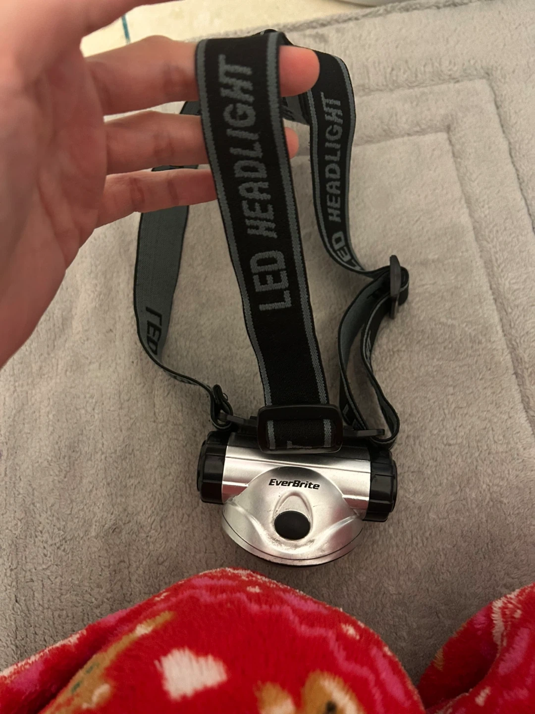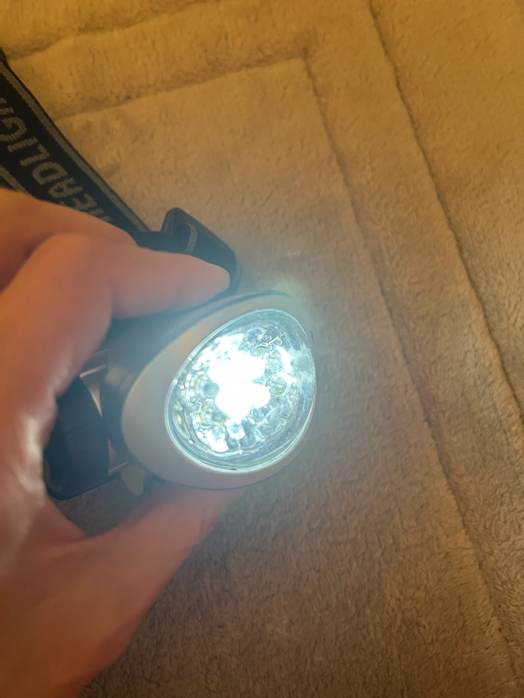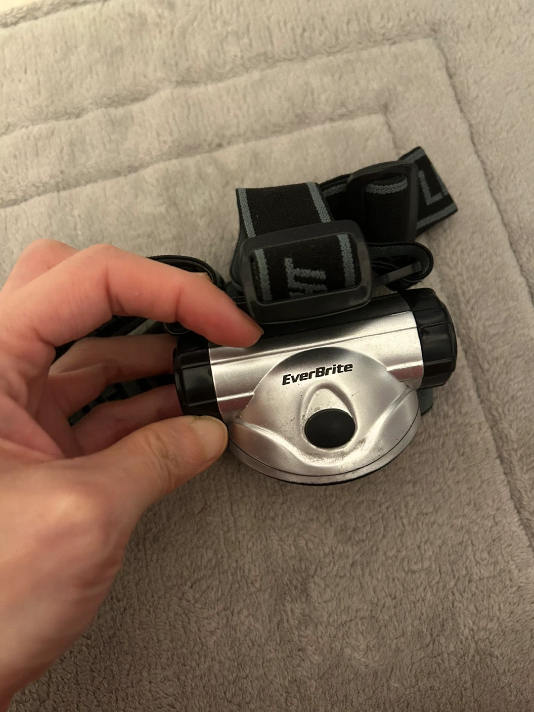 EverBrite LED Headlight with an adjustable strap. It has multiple bright LEDs for illumination. Great for hands-free lighting during outdoor activities or power outages!